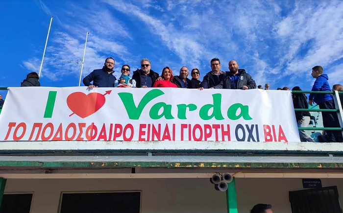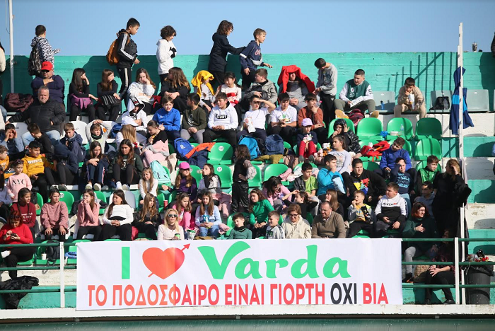 Το δικό τους μήνυμα ενάντια στη βία στα γήπεδα έστειλαν σήμερα οι μαθητές των σχολείων της Βάρδας, που βρέθηκαν στο γήπεδο της πόλης για να παρακολουθήσουν τον αγώνα ανάμεσα στον ΠΑΟΒ και την Ελλάδας Σύρου, στο πλαίσιο της 16ης αγωνιστικής του πρωταθλήματος της Γ’ Εθνικής.