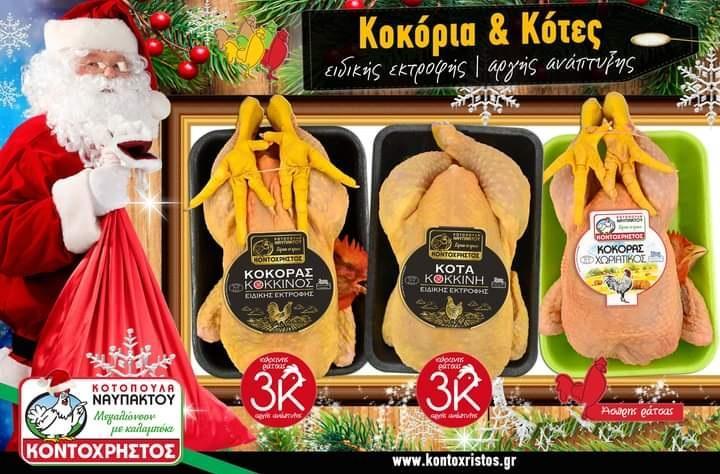 Και αυτά τα Χριστούγεννα τα καταστήματα “Κοτόπουλα Ναυπάκτου Κοντοχρήστος¨σε Αμαλιάδα και Γαστούνη προσφέρουν μεγάλη ποικιλία από κοτόπουλα, κοκόρια και άλλα χριστουγεννιάτικα εδέσματα, με την γνωστή άριστη ποιότητα και τις χαμηλώτερες τιμές της αγοράς.