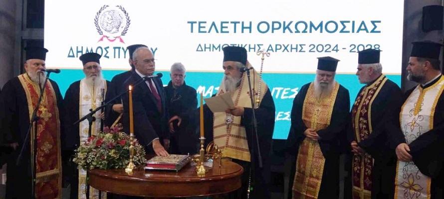 Στο κατάμεστο από κόσμο Θεματικό Πάρκο Ξυστρή πραγματοποιήθηκε,απόψε , η ορκωμοσία της νέας Δημοτικής Αρχής Πύργου και του Δημάρχου Στάθη Καννή, καθώς και όλων των εκλεγμένων δημοτικών και τοπικών συμβούλων. Η ορκωμοσία τελέστηκε υπό του Σεβασμιωτάτου Μητροπολίτη Ηλείας και Ωλένης κ. Αθανασίου ο οποίος, ευχήθηκε στον Δήμαρχο καλή στο έργο του, ενώ παράλληλα τόνισε πως θα βρίσκεται στο πλευρό του σε ότι χρειαστεί.