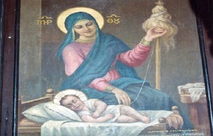 Η Παναγία, με το βρέφος στην Αγκαλιά Της, αποφάσισε να κατεβεί στη γη και να επισκεφτεί ένα μοναστήρι.