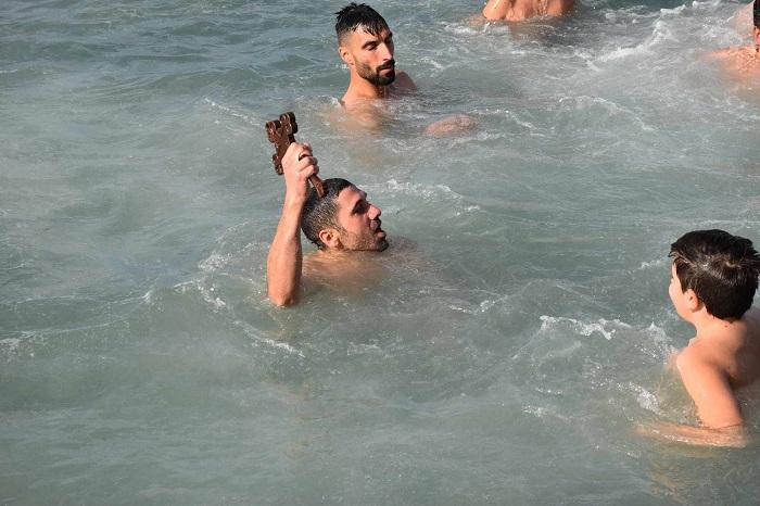 Ιδιαίτερα μεγάλη ήταν και η συμμετοχή των κολυμβητών που βούτηξαν για να πιάσουν το σταυρό, οι οποίοι ήταν συνολικά 12 στον αριθμό, ανάμεσά του και μικρά σε ηλικία παιδιά. Μετά την καθιερωμένη Θεία Λειτουργία στους Ιερούς Ναούς του Δήμου, ο Δήμαρχος Ήλιδας Χρήστος Χριστοδουλόπουλος, τα μέλη της Δημοτικής Αρχής και του Δημοτικού Συμβουλίου, ο νέος Υφυπουργός Προστασίας του Πολίτη και βουλευτής Ηλείας Ανδρέας Νικολακόπουλος, ο βουλευτής Διονύσης Καλαματιανός, οι ιερείς της πόλεως, και οι εκπρόσωποι αρχών και φορέων, όπως και πλήθος πιστών, παραβρέθηκαν στο λιμανάκι του Παλουκίου, όπου και τελέσθηκε ο Καθαγιασμός των υδάτων από τον Αρχιμανδρίτη κ. Δαμασκηνό Πετράκο.