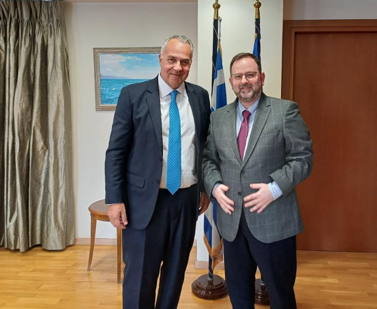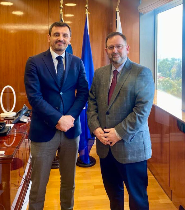 Με τον Υφυπουργό Προστασίας του Πολίτη, Ανδρέα Νικολακόπουλο, ο Νίκος Κοροβέσης είχε μία εκτενή συζήτηση για όλα τα σημαντικά θέματα που αφορούν τον τόπο μας. Μίλησαν για το πρόσφατο μνημόνιο συνεργασίας, που τοποθετεί την Ηλεία ψηλά στον ακαδημαϊκό χάρτη, μεταξύ της Περιφέρειας Δυτικής Ελλάδας, του Δήμου Αρχαίας Ολυμπίας, της Διεθνούς Ολυμπιακής Ακαδημίας και του Πανεπιστημίου Πατρών. Κυρίως όμως συμφωνήσαν, σε όλες εκείνες τις παρεμβάσεις που είναι αναγκαίες να γίνουν, για να τύχει ο νομός μας ακόμη μεγαλύτερης τουριστικής προβολής και αναπτυξιακής προοπτικής.