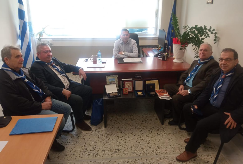 Παρέστησαν ο Αρχηγός της Ένωσης κ.Κώστας Τριανταφυλλόπουλος,οι Υπαρχηγοί κκ.Ανδρ.Γιατράς και Παναγ.Καλαμπρέζος και το μέλος κ.Θύμιος Κολοκοτρώνης. Στην αρχή της συνάντησης ανέπτυξαν τους σκοπούς,στόχους και επιδιώξεις της Ένωσης,όπως την κοινωνική δράση,παρέμβαση και αλληλεγγύη καθώς και την βοήθεια προς τους σύγχρονους προσκόπους, για την ευχερέστερη λειτουργία των τμημάτων.