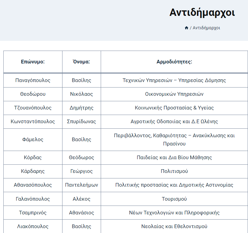 Και οι αντιδήμαρχοι που εμφανίζονται στο ίδιο site: