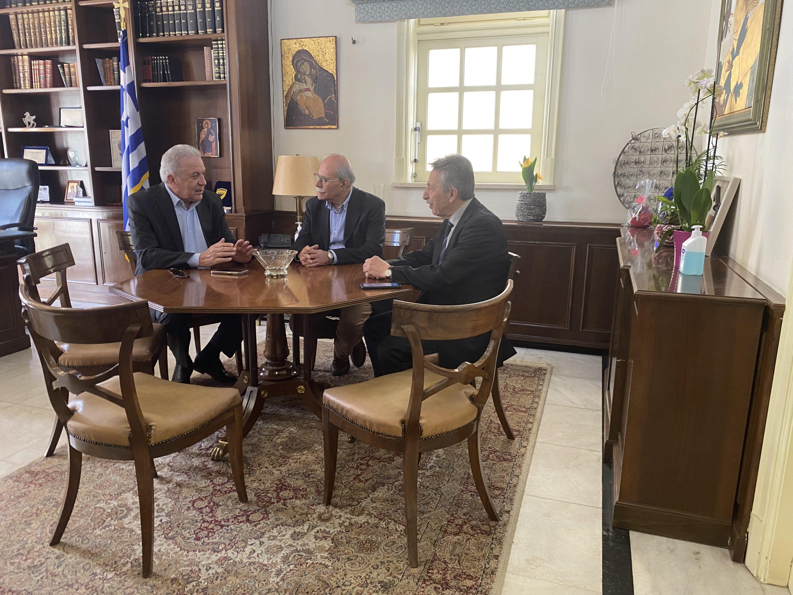 Κατά την διάρκεια της συζήτησης που έγινε παρουσία του Προέδρου του Δημοτικού Συμβουλίου κ Δημήτρη Μεσσαλα και του Αντιδημάρχου Οικονομικών κ Νίκου Θεοδώρου, ο πρώην Ευρωπαίος Επίτροπος ενημερώθηκε για τα τρέχοντα ζητήματα που αντιμετωπίζει ο Δήμος από τον Δήμαρχο κ Στάθη Καννή. Ο κ Αβραμόπουλος αφού εξέφρασε την ικανοποίησή για το γεγονός ότι η συζήτηση διεξήχθη μέσα σε ένα ιδιαίτερα ζεστό και φιλικό περιβάλλον, επεσήμανε πως θα είναι δίπλα στο δήμο σε κάθε διεκδίκηση που θα έχει ως στόχο την ανάπτυξη.