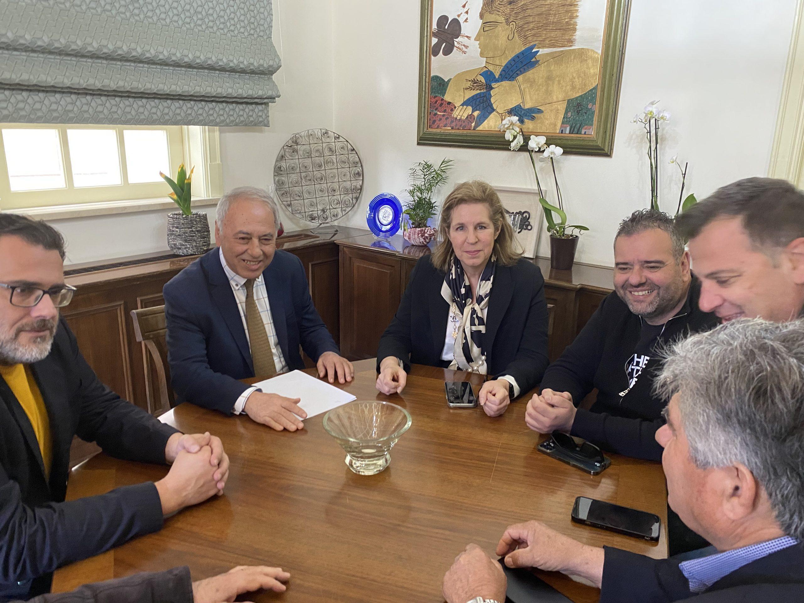Την υποψήφια Ευρωβουλευτή της Ν.Δ κυρία Εύη Χριστοφιλοπούλου υποδέχθηκε το πρωί της Πέμπτης, 14 Μαρτίου 2024, στο Λάτσειο Δημοτικό Μέγαρο Πύργου ο Αναπληρωτής Δήμαρχος κ Νώντας Κυριαζής καθώς ο Δήμαρχος κ. Στάθης Καννής απουσίαζε λόγω προγραμματισμένων ραντεβού για θέματα κρουαζιέρας στον Πειραιά . Κατά την διάρκεια της συζήτησης που έγινε παρουσία του Προέδρου του Δημοτικού Συμβουλίου κ. Δημήτρη Μεσσαλά και του Αντιδημάρχου Παιδείας κ. Θοδωρή Κόρδα τέθηκαν τα ζητήματα που απασχολούν την Τοπική Αυτοδιοίκηση και κυρίως τον Δήμο Πύργου. «Ευχόμαστε να πετύχουν στην Ευρωβουλή άνθρωποι με γνώση των προβλημάτων, ουσιαστικοί και αποτελεσματικοί.
