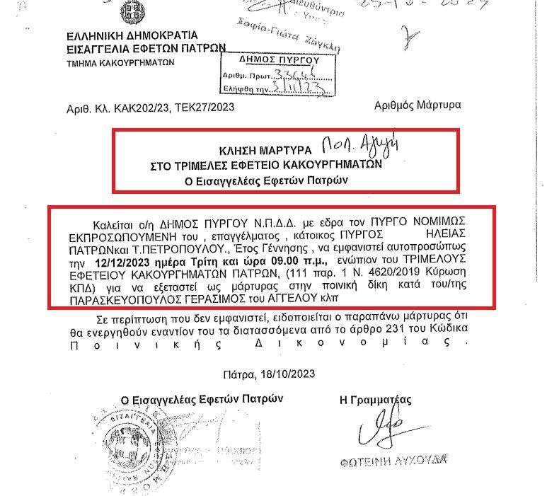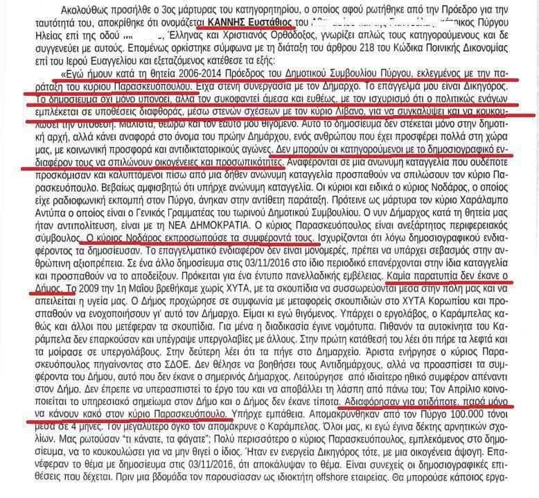 Πρόκειται για υποθέσεις σχετικές με ζημιά του Δήμου Πύργου εκατομμυρίων ευρώ στην περίοδο που δήμαρχος ήταν ο κ. Παρασκευόπουλος και εσείς κ. Καννή ήσασταν Πρόεδρος του Δημοτικού Συμβουλίου.