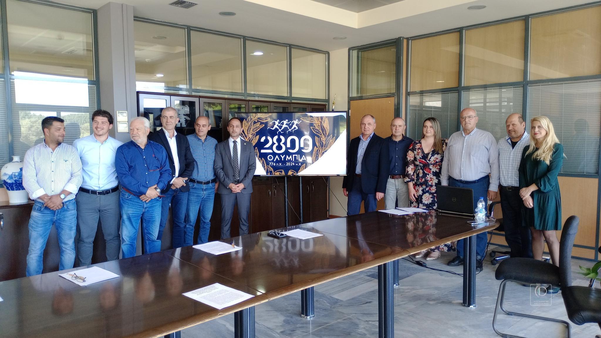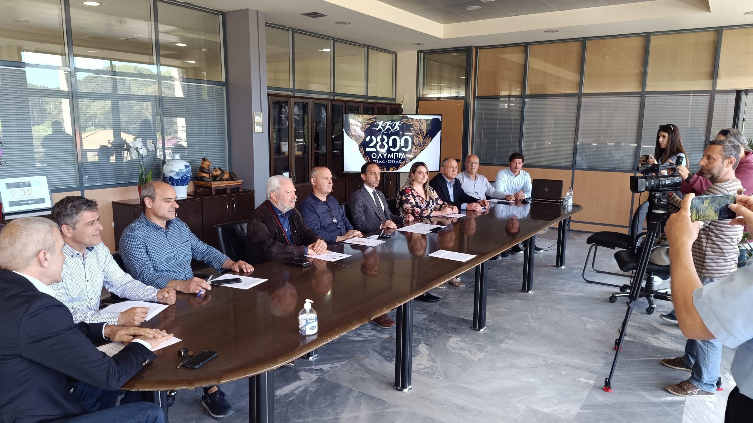 Το Σχέδιο Δράσεων για τον εορτασμό της Τελετής Αφής της Ολυμπιακής Φλόγας για τους ΧΧΧΙΙΙ Ολυμπιακούς Αγώνες «Παρίσι 2024» και των 2800 χρόνων από την πρώτη Τέλεση Ολυμπιακών Αγώνων στον ιερό χώρο της Ολυμπίας (776 π.χ.), σύστησε ο Δήμαρχος Αρχαίας Ολυμπίας, κ. Αριστείδης Παναγιωτόπουλος, σε Συνέντευξη Τύπου που παραχώρησε την Τετάρτη 3 Απριλίου στο Δημαρχείο.