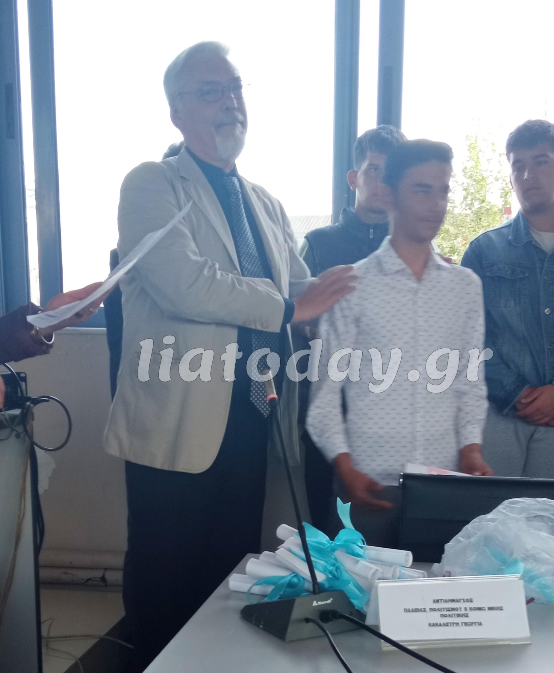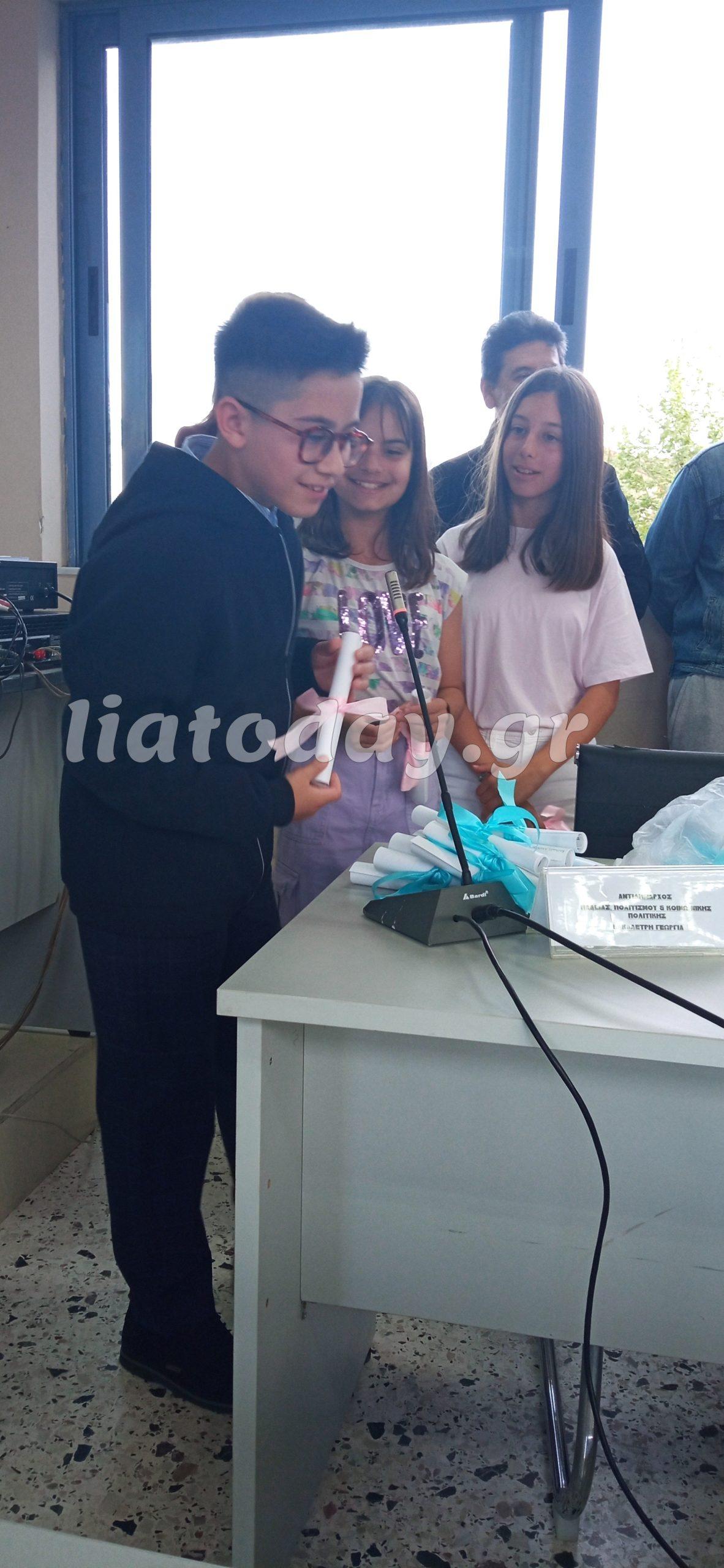 Συγκεκριμένα, βραβεύτηκαν οι μαθητές: Γιατρά Ευφροσύνη, Κατσίγιαννης Βασίλειος, Στεργιόπουλος Στέφανος, Χατζής Γεώργιος, Χάτια Ερμάλ, Καπατσούλιας Χαράλαμπος, Φλιατούρας Χρήστος, Παναγοπούλου Θεοδώρα, Σκουρλά Διονυσία, Γεωργακόπουλος
