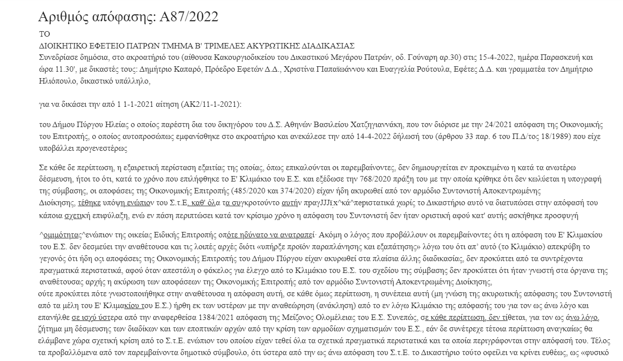 Απαντούμε με στοιχεία αμετάκλητων αποφάσεων της ολομέλειας του Συμβουλίου Επικρατείας, της ολομέλειας του Ελεγκτικού Συνεδρίου ( Ανώτατα δικαστήρια ) και του Διοικητικού Εφετείου Πατρών. Σε όλα τα Δικαστήρια ( Ε.Σ,ΣΕ Δ.Ε Πατρών ) δικαιωθήκαμε πανηγυρικά. Ο κος Καννής παραστάθηκε σε όλες τις δικαστικές διαδικασίες και παντού ηττήθηκε .Όλα όσα κατέθεσε, συκοφαντικά αποκυήματά της νοσηρής φαντασίας του καταρρίφθηκαν από Ανώτατους Δικαστές.