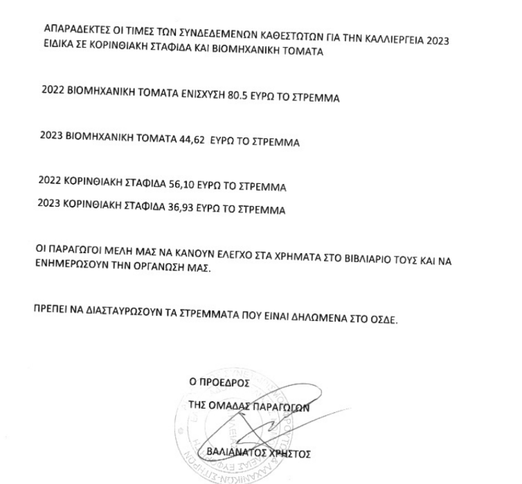 “Υπάρχει μεγάλη αγανάκτηση από τον αγροτικό κόσμο της Ηλείας. Περίμεναν να κάνουν Πάσχα με τις συνδεδεμένες αλλά εκείνο που είδαμε είναι ότι η βιομηχανική ντομάτα για την καλλιέςργεια του ’22 πέρισυ είχε δοθεί 80 ευρώ, φέτος είναι 46, 1.50% κάτω. Η κορινθιακή σταφίδα 56 πέρισυ 36 φέτος. Πείμεναν γιατί τους είχαν πει για το αραποσίτι θα πάρουν συνδεδεμένη 55 με 58 ευρώ, 39,5 είναι τελικά. Από αυτά καταλαβαίνουμε ότι ο αγροτικός κόσμος στην Ηλεία περνάει μεγάλη κρίση.