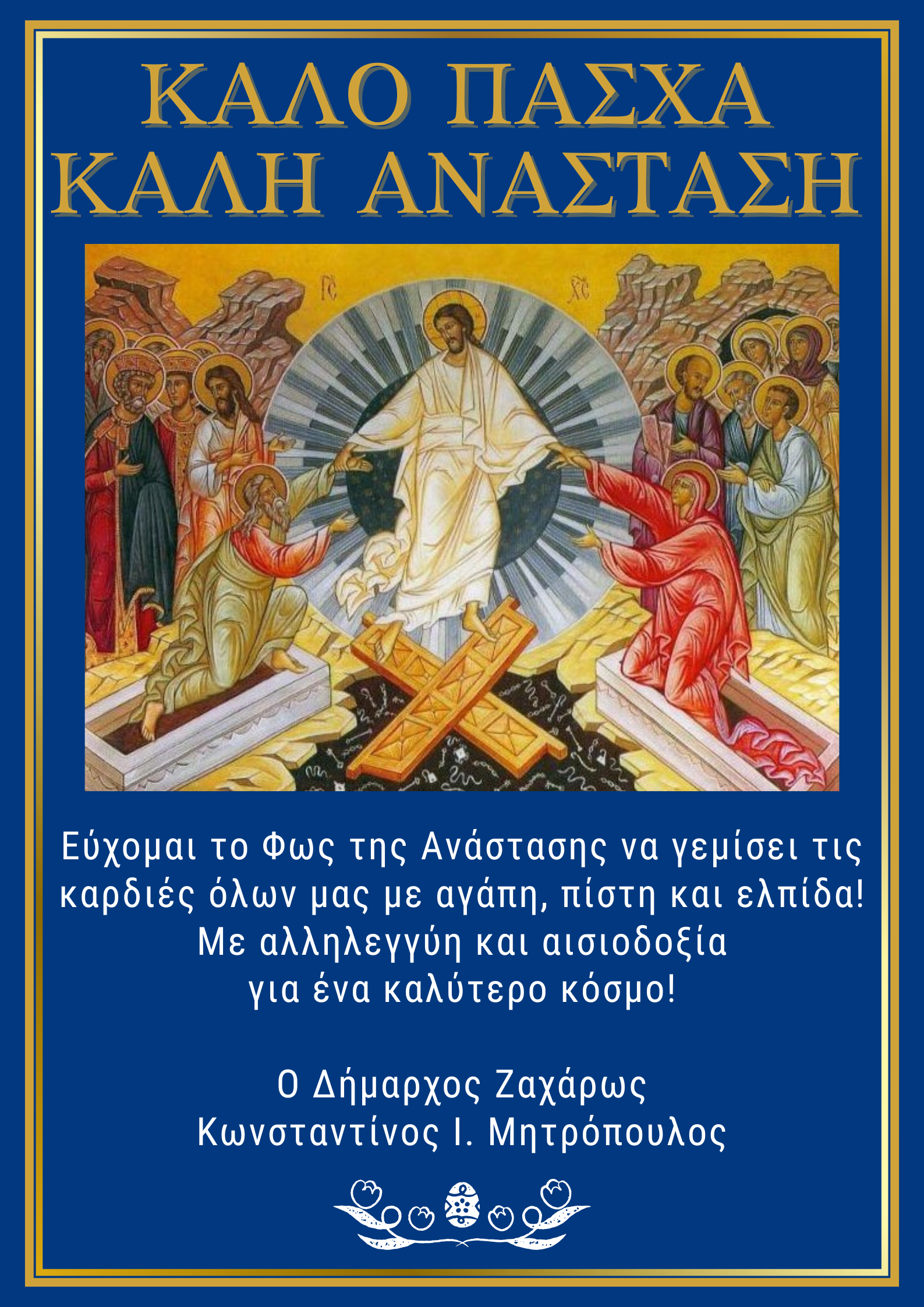 “Εύχομαι το Φως της Ανάστασης να γεμίσει τις καρδιές όλων μας με αγάπη, πίστη και ελπίδα! Με αλληλεγγύη και αισιοδοξία για ένα καλύτερο κόσμο!