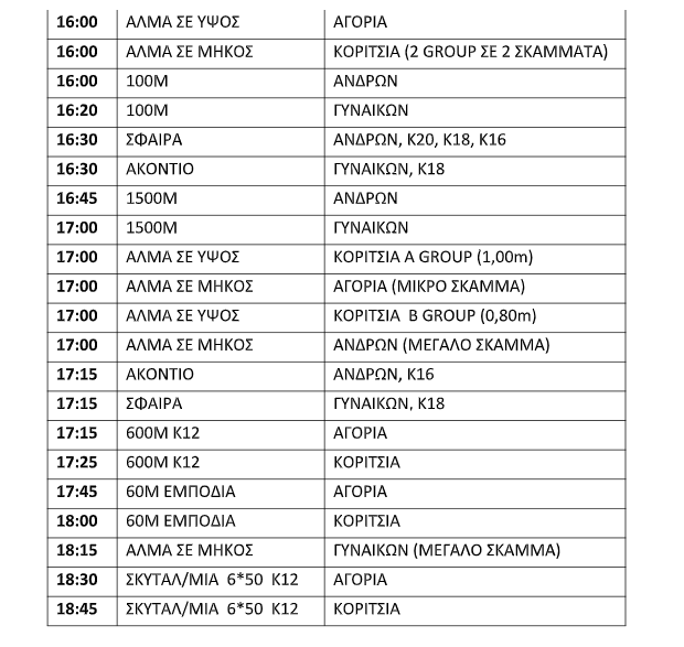 Το πρόγραμμα των αγώνων έχει ως εξής: