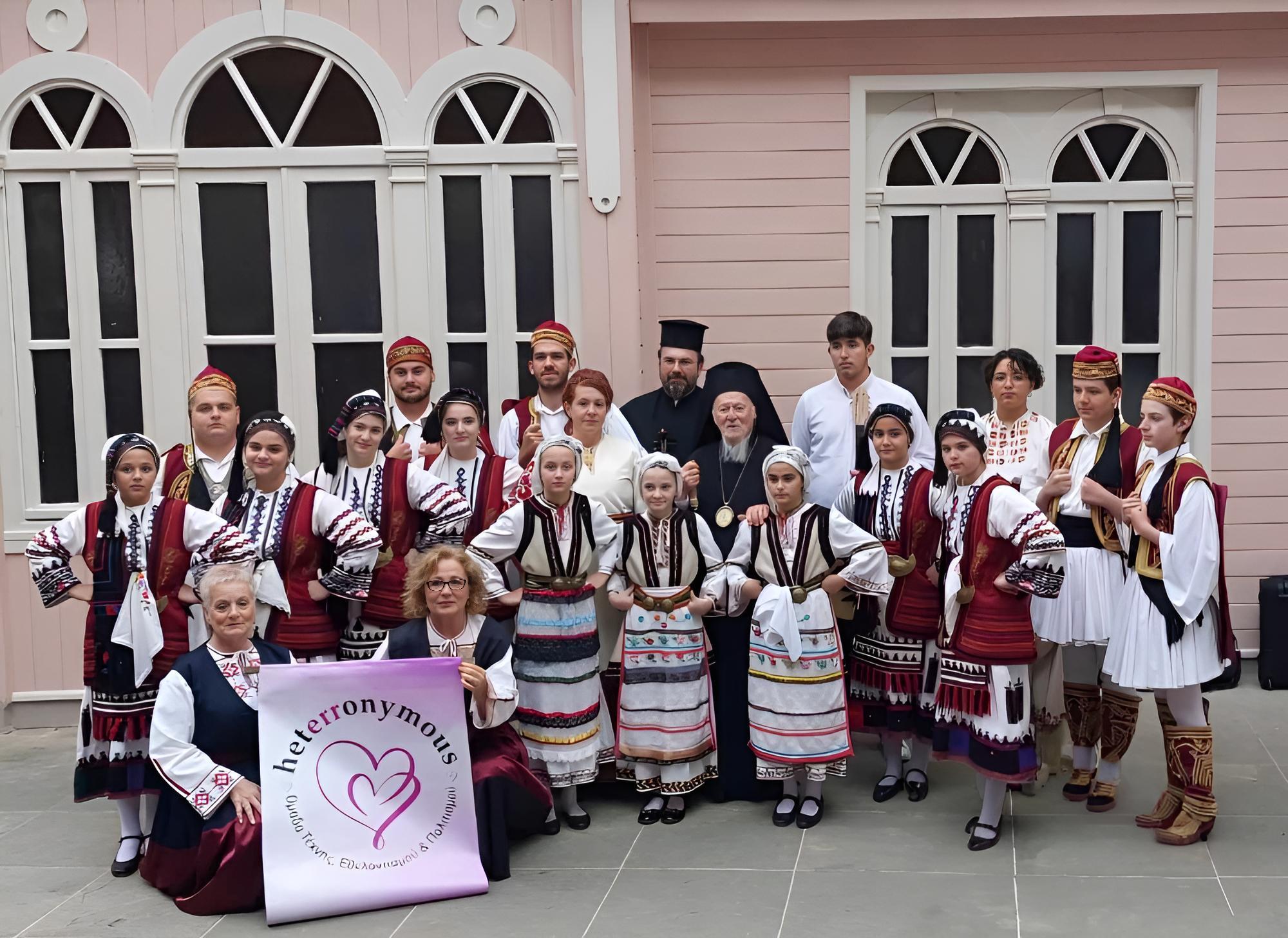 Με μεγάλη επιτυχία η Ομάδα Τέχνης Εθελοντισμού και Πολιτισμού Heterronymous πραγματοποίησε ένα ιδιαίτερο χορευτικό δρώμενο, ανήμερα της Ζωοδόχου Πηγής, στο Οικουμενικό Πατριαρχείο Κωνσταντινούπολης. Το παιδικό – εφηβικό τμήμα των “Heterronymous” είχε την ευκαιρία να ζήσει μοναδικές στιγμές γεμάτες δέος και συγκίνηση, χορεύοντας παραδοσιακούς χορούς της Πελοποννήσου, παρουσία του Οικουμενικού Πατριάρχου κ.κ. Βαρθολομαίου, στον προαύλιο χώρο του Ι.Ν. Αγ. Γεωργίου στο Φανάρι, κάνοντας όλους μας να αισθανόμαστε υπερηφάνεια. Τα παιδιά συνόδευαν οι μαθητές του Μουσικού Γυμνασίου Βαρθολομιού Βαγγέλης Παπαγεωργίου και Κατερίνα Ξένου με τον καθηγητή τους Πρεσβύτερο Γεώργιο Αναγνωστόπουλο, παίζοντας ζωντανή παραδοσιακή μουσική με βιολί, λαούτο και κρουστά.