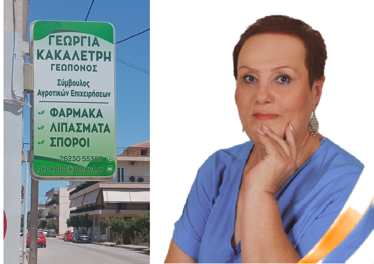 Από τα πιο γνωστά και συνάμα δυναμικά ονόματα του Ηλειακού κάμπου, αναμφισβήτητα είναι η Γεωπόνος Γεωργία Κακαλέτρη. Οι γνώσεις της, το ήθος της, ο πάντα ευχάριστος χαρακτήρας της αλλά και η ευφυΐα της την έχουν αναδείξει ως ένα από τα πιο αγαπητά πρόσωπα. Η κ. Κακαλέτρη διατηρεί από το 2005 κατάστημα στα Λεχαινά, ενώ παράλληλα είναι και αντιδήμαρχος του Δήμου Ανδραβίδας-Κυλλήνης, στενή συνεργάτης του δημάρχου Γιάννη Λέντζα, με μεγάλη κοινωνική προσφορά.