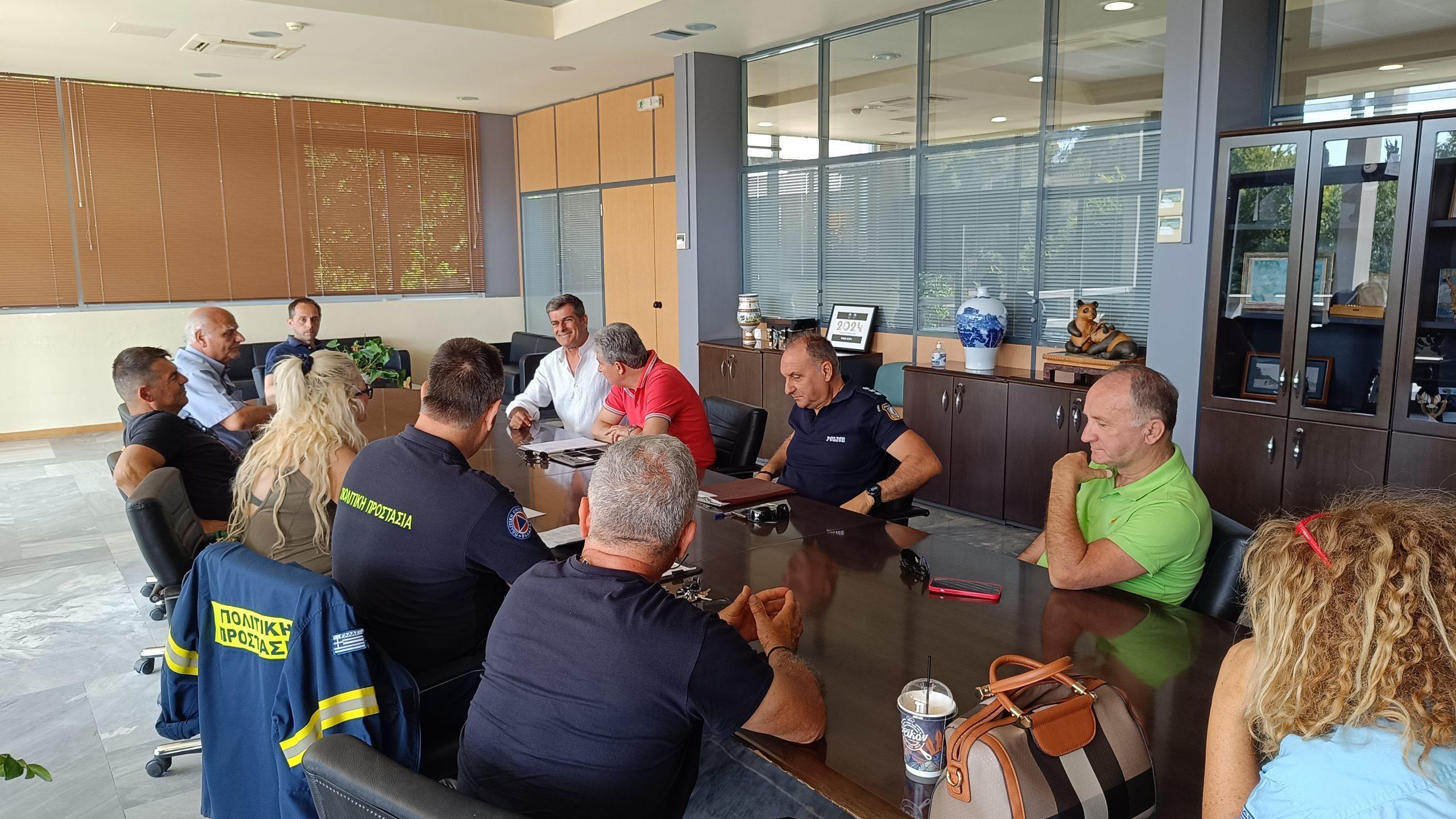 Ο κ. Παναγιωτόπουλος επισήμανε τον κίνδυνο των ημερών και ότι ο Δήμος είναι σε έτοιμος να επέμβει άμεσα αν χρειαστεί, καθώς και να προβεί σε επιπλέον ενέργειες και δράσεις που κρίνονται απαραίτητες τις ημέρες αυτές. Από την πλευρά του, ο κ. Λινάρδος τόνισε ότι εξαιτίας της υψηλής επικινδυνότητας βαθμού 4 και 5, όλα τα κρατικά όργανα βρίσκονται σε πλήρη ετοιμότητα και με δεδομένο την μεγάλη προσέλευση τουριστών που αναμένεται το Σάββατο, όλοι οι αρμόδιοι φορείς οφείλουν να βρίσκονται σε επαγρύπνηση. Επιπλέον, ο κ. Καρανικολός ανέφερε ότι όλα τα πυροσβεστικά οχήματα έχουν επανδρωθεί πλήρως, έχουν ενημερωθεί όλοι οι Πρόεδροι των Τοπικών Κοινοτήτων με μαζικό μήνυμα από χθες το μεσημέρι, ώστε να ενεργοποιήσουν τις ομάδες πυρασφάλειας, έχει αποσταλεί μαζικό μήνυμα σε όλους τους ιδιώτες ιδιοκτήτες Μ.Ε και Υδροφόρων, ενώ σε επικοινωνία που είχε με την Αρμόδια Αντιδήμαρχο κ. Ηλιοπούλου ζητήθηκε το προσωπικό του Βοήθεια Στο Σπίτι, να είναι σε επιφυλακή, ώστε να παρέχουν τη συνδρομή τους αν χρειαστεί.
