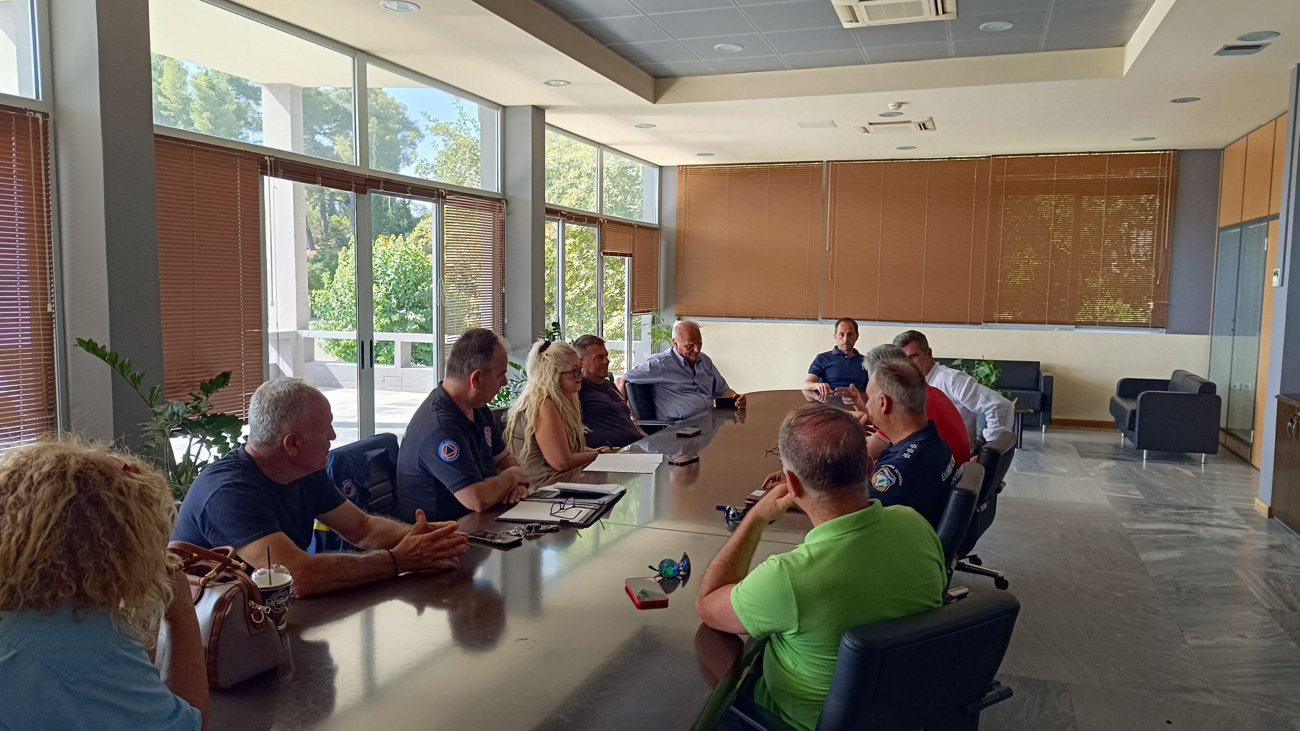 Με σκοπό την ενημέρωση για τον βαθμό ετοιμότητας του Δήμου, τον συντονισμό όλων των απαραίτητων ενεργειών και τη λήψη μέτρων πρόληψης δασικών πυρκαγιών, στην συνεδρίαση, της οποίας προέδρευσε ο Δήμαρχος Αρχαίας Ολυμπίας, κ. Αριστείδης Παναγιωτόπουλος, συμμετείχε ο Αρμόδιος Αντιδήμαρχος Πολιτικής Προστασίας, κ. Γιώργος Λινάρδος, ο Προϊστάμενος του Τμήματος Πολιτικής Προστασίας, κ. Γιώργος Καρανικολός και οι κ.κ. Αριστομένης Σταθόπουλος (ΔΕΔΔΗΕ), Φώτης Γρηγορόπουλος (Αν. Προϊστάμενος Πυροσβεστικού Κλιμακίου Αρχαίας Ολυμπίας), Παναγιώτης Λάττας (Δασάρχης Πύργου), Νικόλαος Αργυρόπουλος (Διοικητής Α.Τ. Αρχαίας Ολυμπίας), Ιωάννης Πετρόπουλος (Υποδιοικητής Α.Τ. Αρχαίας Ολυμπίας), Αμαλία Βασιλέλη (ΕΚΑΒ Ν.Ηλείας) και Γιώργος Σκούτας (ΔΕΥΑ).