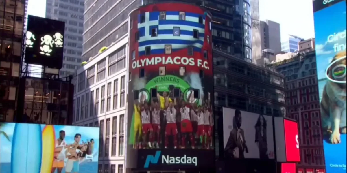 Ο θρίαμβος του Ολυμπιακού στο Conference League εμφανίστηκε στον εμβληματικό πύργο του Nasdaq στην Times Square της Νέας Υόρκης. Με ένα εντυπωσιακό μήνυμα, το Nasdaq συνεχάρη τον Ολυμπιακό για την κατάκτηση του UEFA Europa Conference League, την πρώτη ελληνική ομάδα η οποία κατέκτησε ευρωπαϊκό τρόπαιο στο ποδόσφαιρο. «Ο Ολυμπιακός συνεχίζει να ταξιδεύει υπερήφανα την ελληνική σημαία σε όλο τον κόσμο», όπως αναφέρει σε ανάρτησή της η «ερυθρόλευκη» ΠΑΕ.