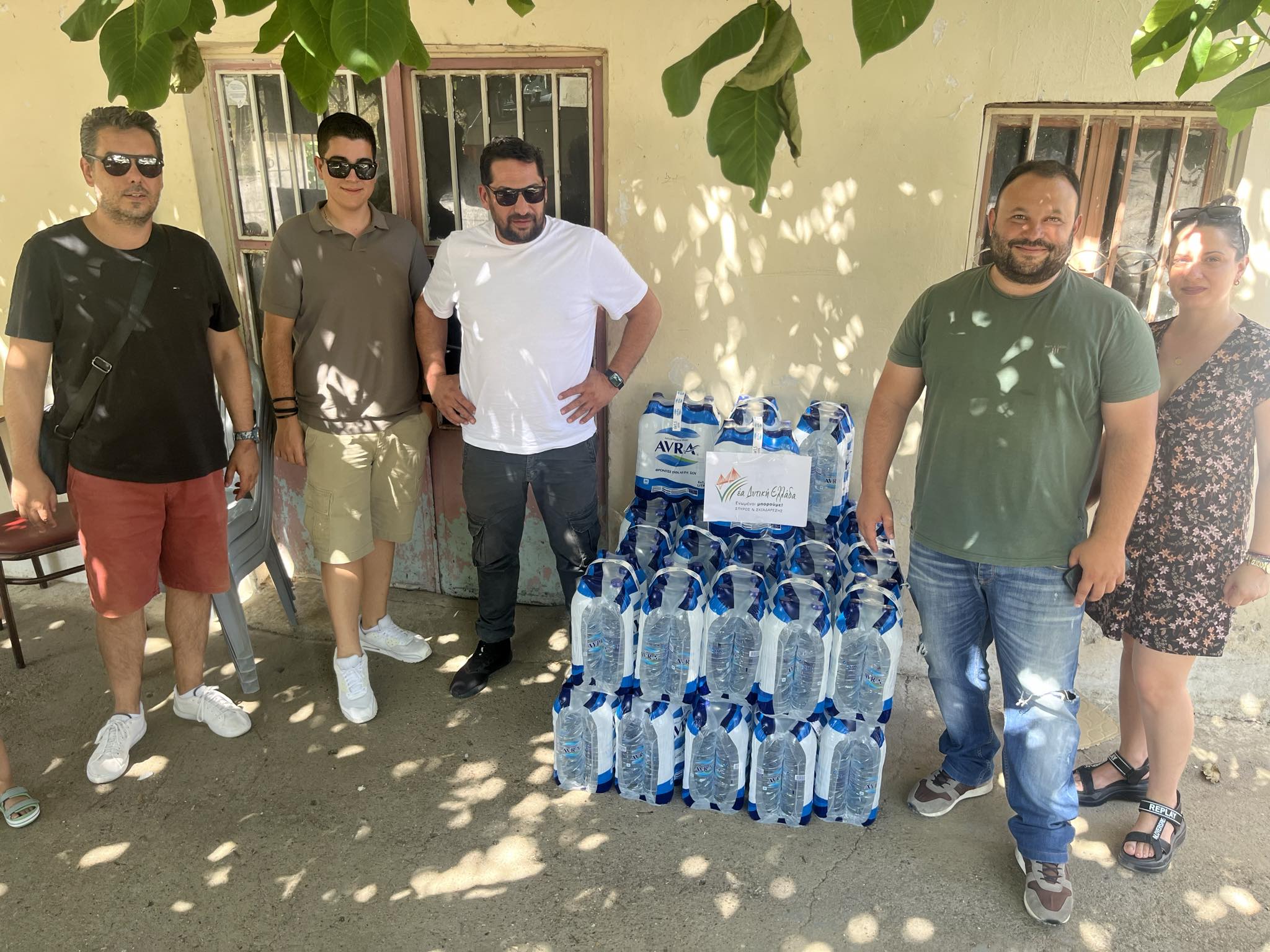 Τις πληγείσες περιοχές της Δ.Ε. Τριταίας του Δήμου Ερυμάνθου Αχαΐας επισκέφθηκε το πρωί της Πέμπτης αντιπροσωπεία της περιφερειακής παράταξης «Νέα Δυτική Ελλάδα», με επικεφαλής τον Σπύρο Σκιαδαρέση, προκειμένου να παραδώσουν εμφιαλωμένα νερά στους πυρόπληκτους. Συγκεκριμένα, επισκέφθηκαν τα χωριά Ρουπακιά, Αγία Βαρβάρα, Γάλαρο και Κάλφα και παρέδωσαν στους προέδρους των Κοινοτήτων δύο παλέτες με εμφιαλωμένα νερά 1,5 λίτρου, προσφορά της εταιρείας «Μπακαλάρος».