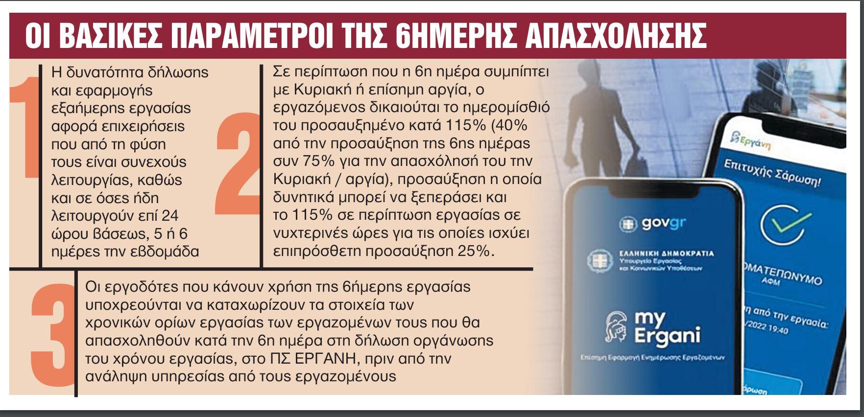 Τονίζεται ότι η δυνατότητα εξαήμερης εργασίας αφορά αποκλειστικά: