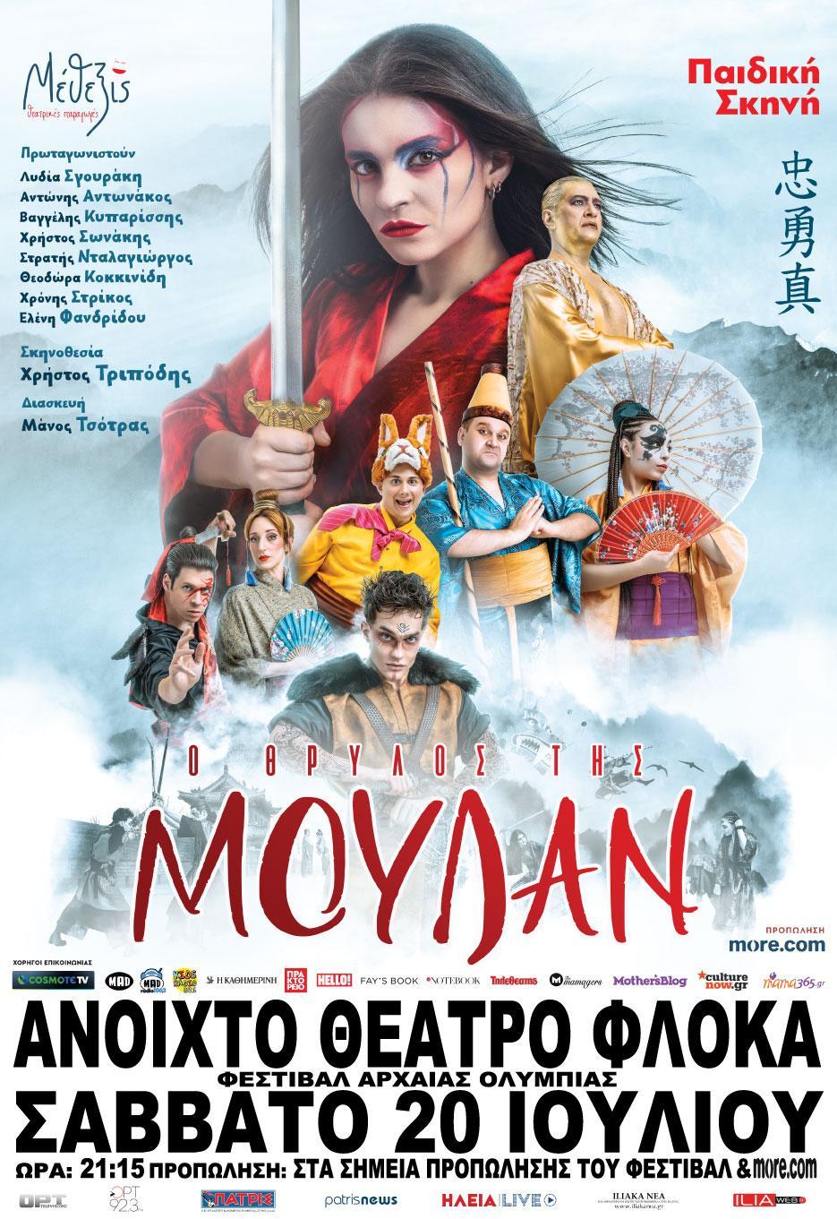 Ένας από τους διασημότερους μύθους παγκοσμίως για πρώτη φορά σε θεατρική μεταφορά για παιδιά στην Ελλάδα «Ο Θρύλος της Μουλάν», ένας από τους διασημότερους μύθους παγκοσμίως παρουσιάζεται για πρώτη φορά στην Ελλάδα, αυτό το καλοκαίρι, από την παιδική σκηνή του Χρήστου Τριπόδη και την εταιρία Μέθεξις. Πρόκειται για μία φαντασμαγορική θεατρική παραγωγή, βασισμένη στο αρχαίο κινέζικο ποίημα «Η Μπαλάντα της Χουά Μουλάν», με εντυπωσιακά κοστούμια, σκηνικά, σπαθομαχίες και χορογραφίες, καθώς και διαδραστικό παιχνίδι με το κοινό. Λίγα λόγια για τον Μύθο της Μουλάν: Ο αρσενικός λαγός έχει βαριά μπροστινά πόδια. Ο θηλυκός λαγός έχει πονηρά μάτια, όταν όμως οι δύο λαγοί τρέχουν δίπλα-δίπλα, ποιος μπορεί να διακρίνει τον θηλυκό απ’ τον αρσενικό; «Η Μπαλάντα της Χουά Μουλάν»