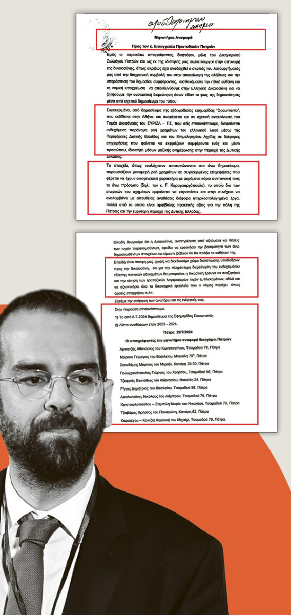 Μηνυτήρια αναφορά από δέκα δικηγόρους της Πάτρας για την αδράνεια των δικαστικών αρχών μετά τις αποκαλύψεις του Documento για τον περιφερειάρχη δυτικής Ελλάδας