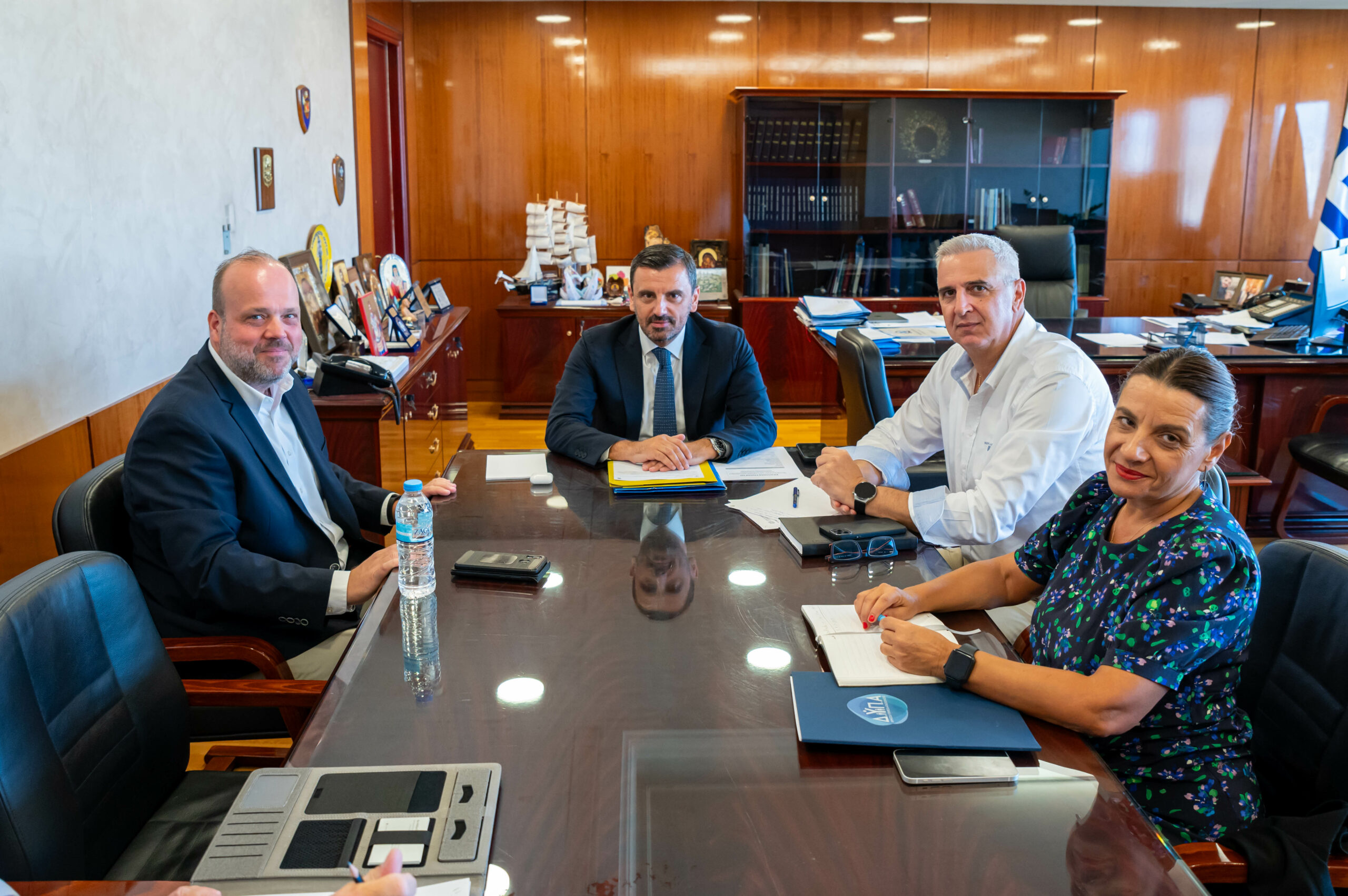 Ο Υφυπουργός Προστασίας του Πολίτη, Ανδρέας Νικολακόπουλος, συναντήθηκε την Τρίτη 3 Σεπτεμβρίου2024, με τον Υφυπουργό Εργασίας και Κοινωνικής Ασφάλισης, κ. Κωνσταντίνο Καραγκούνη, τον Διοικητή και Πρόεδρο του ΔΣ της Δ.ΥΠ.Α, Σπύρο Πρωτοψάλτη και την Υποδιοικήτρια, Γιάννα Χορμόβα, παρουσία του Γενικού Γραμματέα Αντεγκληματικής Πολιτικής, Αρίστου Περρή, σε συνέχεια της διαρκούς και αγαστής συνεργασίας που έχει αναπτυχθεί το τελευταίο διάστημα.