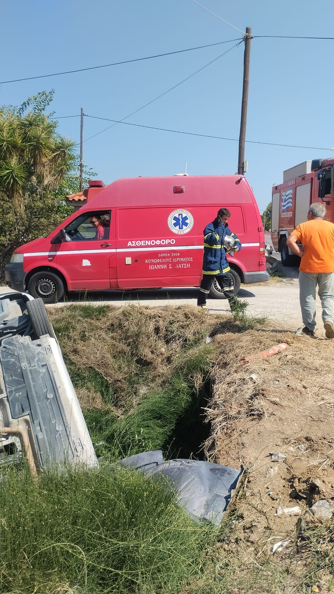 Ο οδηγός και η συνοδηγός του ΙΧ αυτοκινήτου τραυματίστηκαν ελαφρά. Στο σημείο τους προσέφεραν πρώτες βοήθειες από πλήρωμα ασθενοφόρου του ΕΚΑΒ χωρίς να χρειαστεί να μεταφερθούν στο κέντρο υγείας Βάρδας. Αμεσα ειδοποιήθηκε η πυροσβεστική υπηρεσία και αστυνομία η οποία διερευνά της συνθήκες του τροχαίου ατυχήματος.