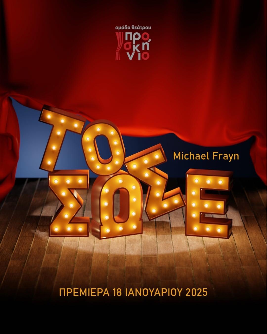 Συγκεκριμένα μετά τις γιορτές θα παρουσιάσει στο Θέατρο Απόλλων τη φιλόδοξη παραγωγή «Το σώσε» του κορυφαίου Βρετανού συγγραφέα Μάικλ Φρέυν, σε σκηνοθεσία Αλέξανδρου Κοέν, ενώ το απαιτητικό σκηνικό της παράστασης θα επιμεληθεί ο Άρης Χρυσανθόπουλος. Ένας τρισάθλιος θίασος ανεβάζει στο θέατρο ένα τρισάθλιο έργο χωρίς ουσιαστικά να είναι έτοιμο για παράσταση. Αποτέλεσμα; Επί σκηνής όλα πάνε λάθος, και στο παρασκήνιο οι καβγάδες και οι ανταγωνισμοί κορυφώνονται. Το έργο τρυπώνει στον κόσμο των παρασκηνίων μιας θεατρικής παράστασης, και αποκαθηλώνει κάθε μύθο.