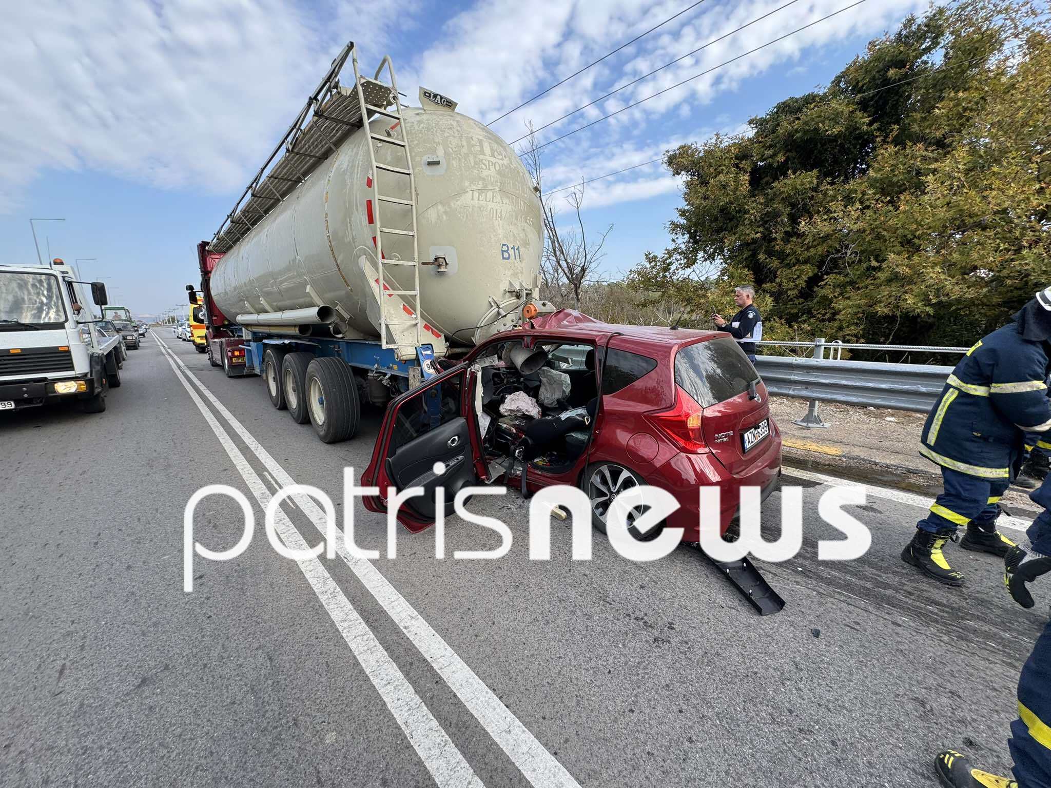 Η σύγκρουση, ήταν σφοδρότατη, κάτι που μαρτυρούν και οι εικόνες που κατέγραψε ο φακός της “Π”. Το αυτοκίνητο της 45χρονης… “καρφώθηκε” στο πίσω μέρος του βαρέως οχήματος με αποτέλεσμα το στρογγυλό τμήμα του φορτηγού να διαπεράσει το ΙΧ της άτυχης γυναίκας και να την τραυματίσει θανάσιμα. Ο θάνατος της, ήταν ακαριαίος. Λαμαρίνες, σπασμένα πλαστικά και εξαρτήματα από τα οχήματα σκορπίστηκαν στο δρόμο, μαρτυρώντας το σημείο της τραγωδίας. Επί τόπου έσπευσαν δυνάμεις της Πυροσβεστικής Υπηρεσίας του Πύργου προκειμένου να απεγκλωβίσουν την άτυχη γυναίκα από το αυτοκίνητο της που μετατράπηκε μετά τη σύγκρουση σε άμορφη μάζα σιδερικών.