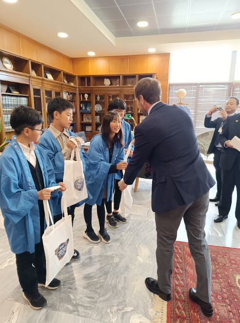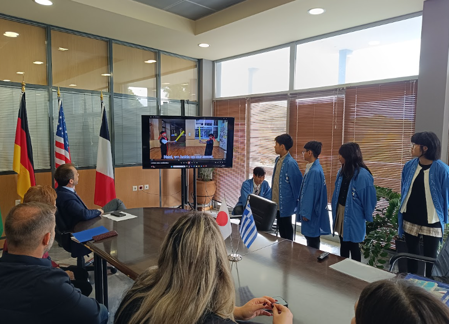 Οι μαθητές, με τον επιβλέποντα και υπεύθυνο της αποστολής, Ryoichi Hayakawa, συστήθηκαν στον κ. Παναγιωτόπουλο, στον οποίο ανέφεραν τα ενδιαφέροντά τους και την αγάπη τους για τη χώρας μας και παρουσίασαν τις δράσεις που έχουν κάνει στο σχολείο τους με πυρήνα την Ελλάδα, την ιστορία και τον πολιτισμό της. Παράλληλα, εξέφρασαν τη στήριξή τους στους Έλληνες, οι οποίοι συχνά πλήττονται από φυσικές καταστροφές, όπως οι πυρκαγιές, θυμίζοντας ότι και οι ίδιοι υπήρξαν θύματα καταστροφικών πλημμυρών (τσουνάμι) λίγα χρόνια πριν. Μέσα από ένα σύντομο βίντεο, έδειξαν τα έργα που κατασκεύασαν, όπως ο Παρθενώνας, τα ήθη και τα έθιμα της πατρίδας τους, τις πολεμικές παραδόσεις τους, κ.α.