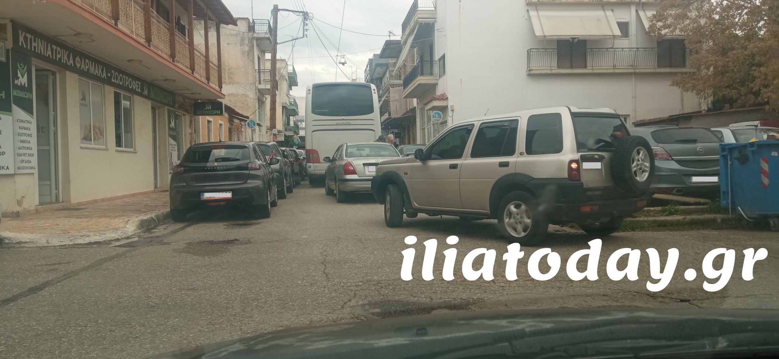 Το λεωφορείο του ΚΤΕΛ, μπλόκαρε σε δρόμο της Αμαλιάδας, από τα παρκαρισμένα, αριστερά και δεξιά, αυτoκίνητα.Ο οδηγός ενός αυτοκινήτου που εμπόδιζε “εξαφανισμένος”, με αποτέλεσμα τα ΙΧ πίσω από το λεωφορείο, λόγω μεγάλης αργοπορίας, αναγκάστηκαν να οπισθοχωρήσουν και να φύγουν από άλλο δρόμο.
