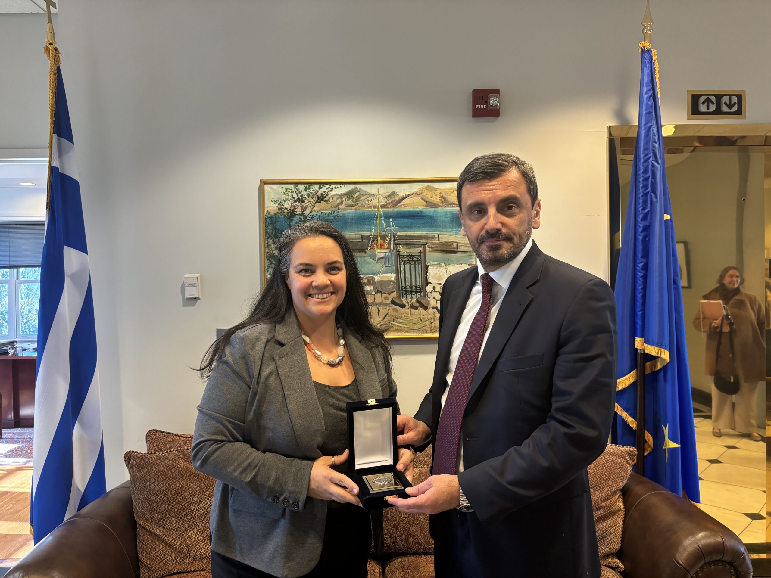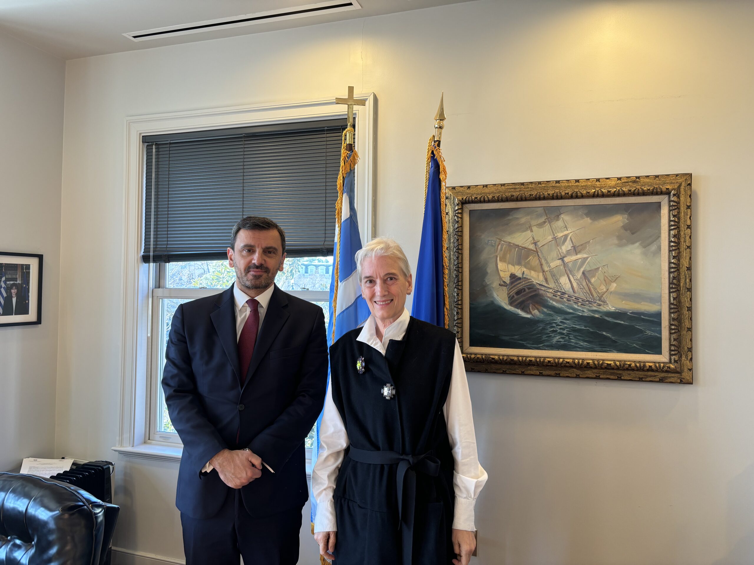 Μία Πρέσβη με σπουδαίο διαχρονικό έργο ως προς την υποστήριξη των συμφερόντων της Ελλάδος στο εξωτερικό, μέσω των νευραλγικών διπλωματικών θέσεων που έχει υπηρετήσει. Αντικείμενο της συζήτησης με την κα. Πρέσβη, ήταν οι σημαντικές γεωπολιτικές εξελίξεις σε Παγκόσμιο επίπεδο, γενικότερα ζητήματα ασφάλειας, αλλά και οι στρατηγικές σχέσεις Ελλάδος και Η.Π.Α, οι οποίες βρίσκονται στο καλύτερο δυνατό σημείο. Επιπλέον, συζήτησαν και για το ελληνικό Σωφρονιστικό σύστημα και τα θέματα που χρήζουν αντιμετώπισης, ως προς την βελτίωση του.