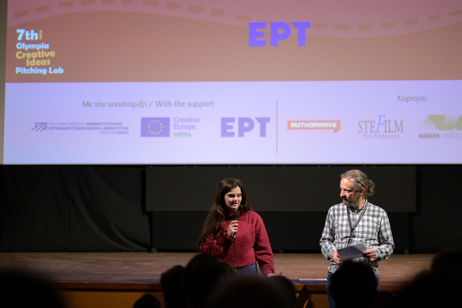 *Η ΕΡΤ έδωσε το βραβείο Pitching στο σχέδιο Big Fish της Κατερίνας Τζωρτζάτου με ήρωες δύο αδέρφια με αλκοολικό πατέρα, που καταλήγουν, μόνα, για ψάρεμα στην αγαπημένη τους λίμνη. Η σκηνοθέτρια θα λάβει έπαθλο 3.000 ευρώ. *Το Ελληνικό Κέντρο Κινηματογράφου, Οπτικοακουστικών Μέσων και Δημιουργίας (ΕΚΚΟΜΕΔ) έδωσε το δικό του βραβείο για το Pitching στο σχέδιο Sisters της Μαριάννας Μποσταντζόγλου, με θέμα το περιπετειώδες ταξίδι μιας δωδεκάχρονης και της μικρής αδερφής της στους χαοτικούς δρόμους της Αθήνας, καθώς προσπαθούν να βρεθούν στο νοσοκομείο όπου νοσηλεύεται ο πατέρας τους. Το βραβείο συνοδεύεται με έπαθλο 3.000 ευρώ.