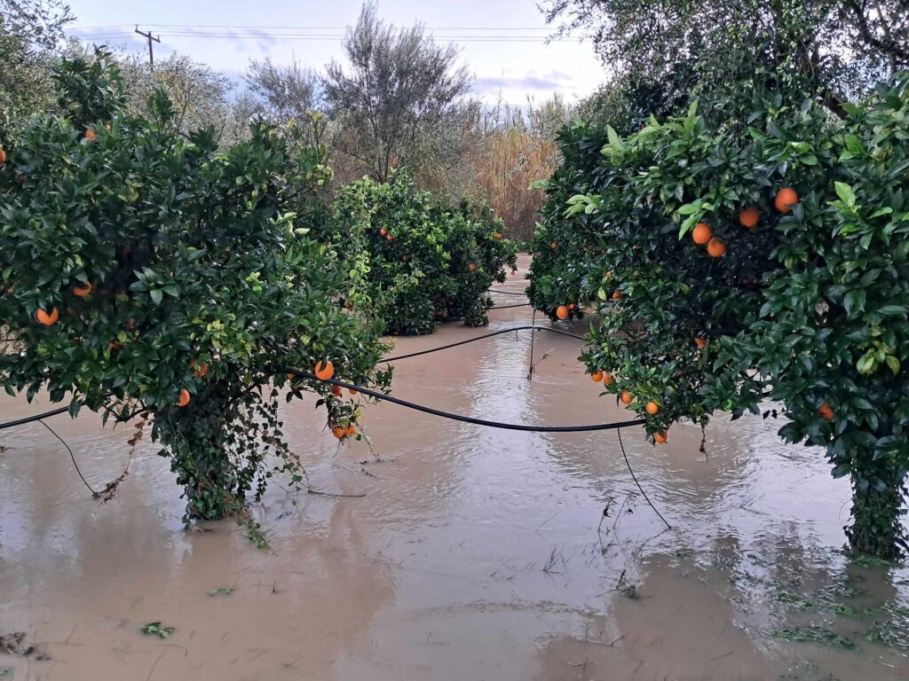 Λόγω της έντονης βροχόπτωσης έχουν πλημμυρίσει αρκετά κτήματα.