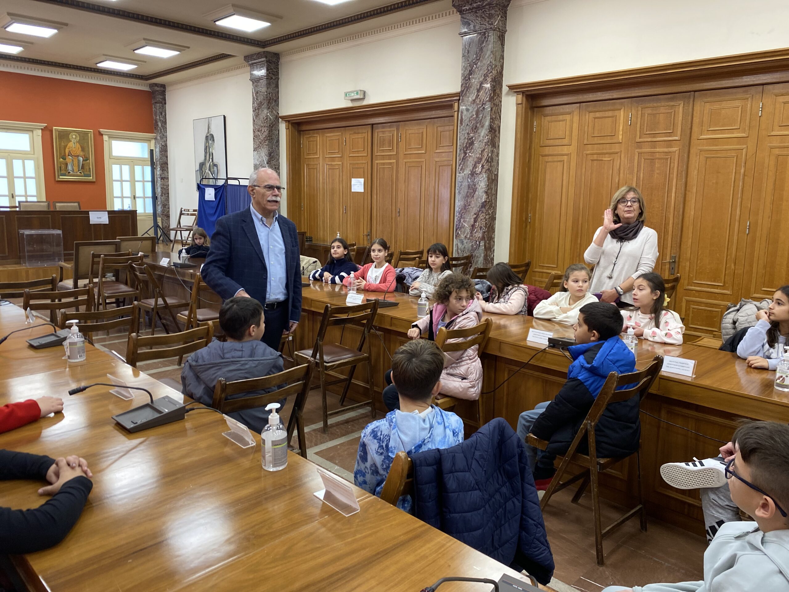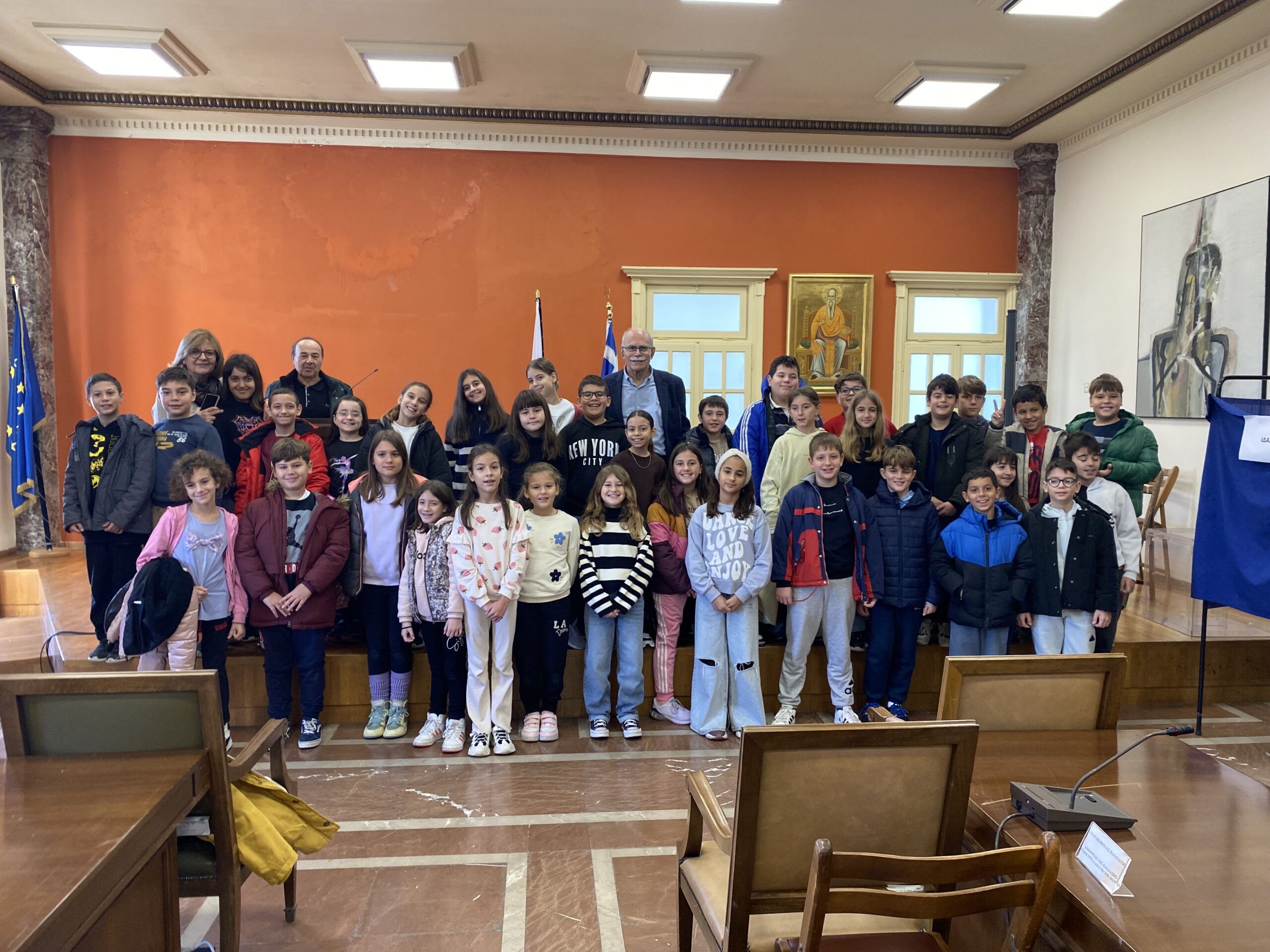Τέλος ο κ. Καννής τους ξενάγησε στους χώρους του Δημαρχείου, ενώ πέρασαν και από το γραφείο του, από όπου έφυγαν με το κέρασμα που είχε φροντίσει ο Δήμαρχος να υπάρχει, τόσο για τους ίδιους όσο και για τους εκπαιδευτικούς που τους συνόδευαν.