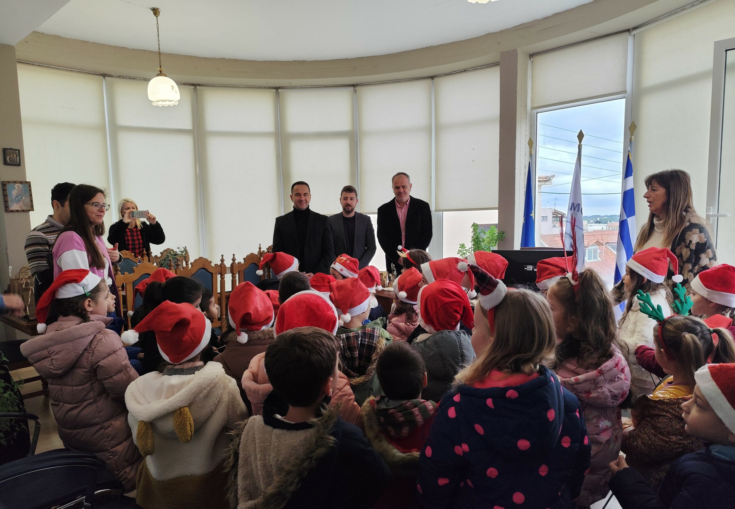 Μια ευχάριστη επίσκεψη για τον Δήμαρχο Ζαχάρως Κωνσταντίνο Μητρόπουλο, από τους μαθητές και τις μαθήτριες του 2ου Νηπιαγωγείου Ζαχάρως αλλά και την παιδική χορωδία του Δημοτικού Σχολείου Ζαχάρως. Το γραφείο του Δημάρχου γέμισε με χαρούμενες παιδικές φωνές, αφού τα παιδιά και οι συνοδοί εκπαιδευτικοί ήρθαν να πουν τα Χριστουγεννιάτικα κάλαντα.