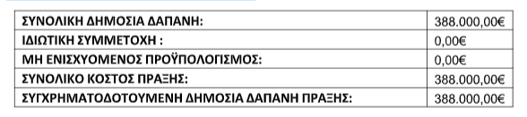 Το κόστος της πράξης κατανέμεται ως εξής: