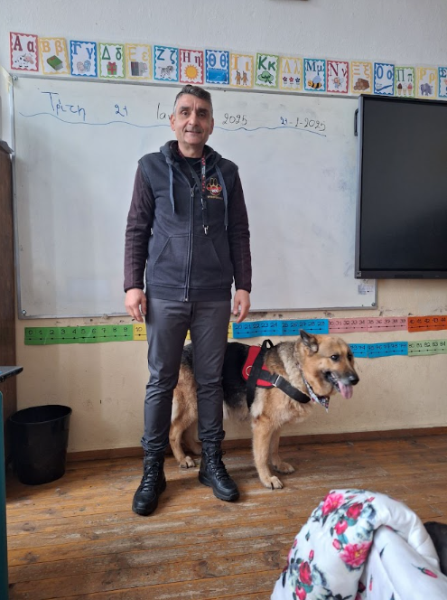 Την επιτυχημένη και άκρως ενδιαφέρουσα εκπαιδευτική παρουσίαση, με τη συνοδεία σκύλου, ώστε τα παιδιά να έρθουν σε επαφή και να γνωρίσουν από κοντά τον τρόπο συμπεριφοράς των τετράποδων φίλων μας, έκανε ο Ανδρέας Σπυρόπουλος (Dog House Training Club), πιστοποιημένος εκπαιδευτής σκύλων και μέλος του Πανελληνίου Συλλόγου Εκπαιδευτών Σκύλων Ελλάδος.