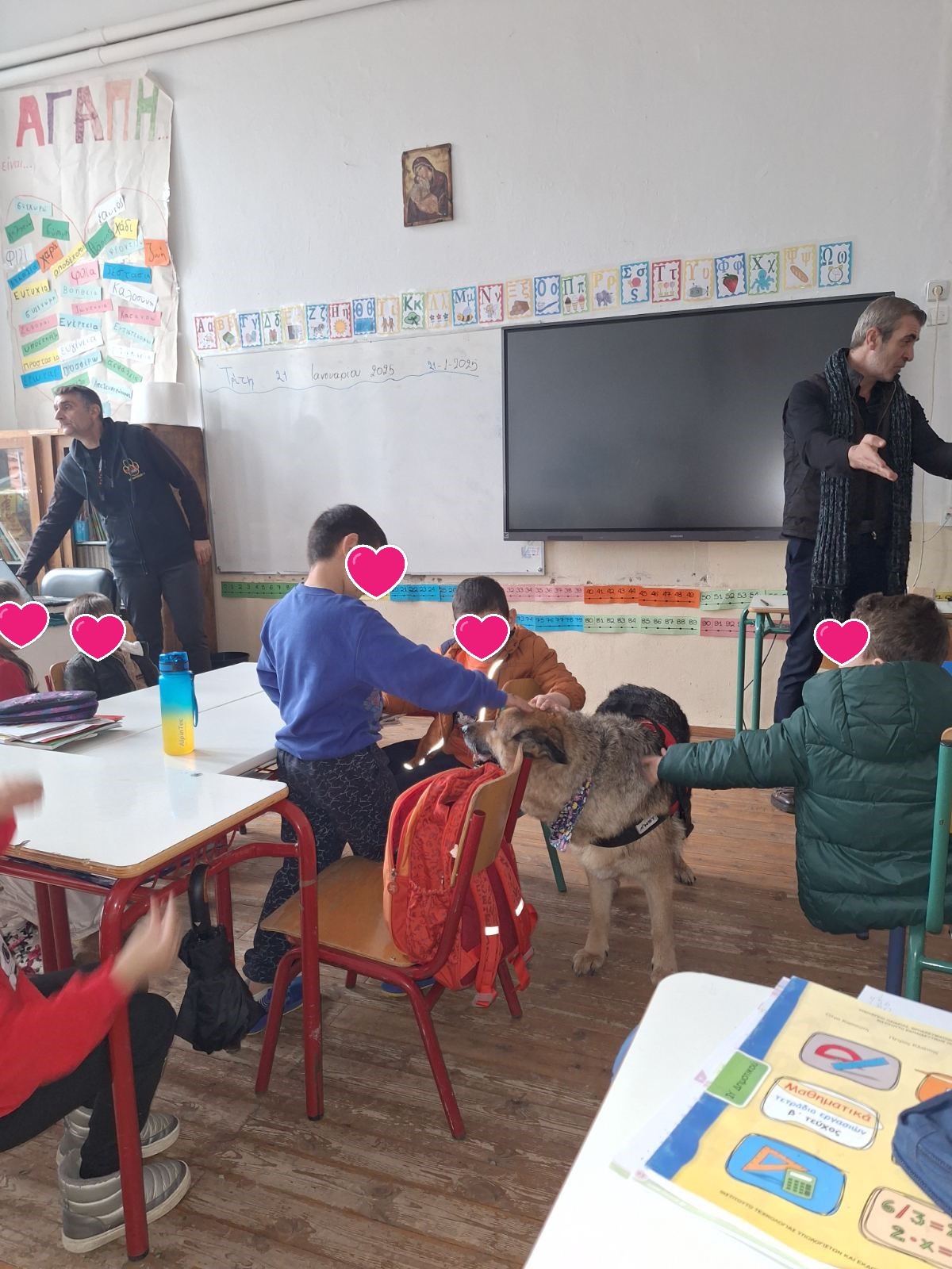 Οι μαθητές των σχολείων μαζί με τις δασκάλες τους ενθουσιάστηκαν με την τετράποδη φίλη τους, έπαιξαν μαζί της, εξέφρασαν τις απορίες τους και παρακολούθησαν με ενδιαφέρον θέματα όπως: