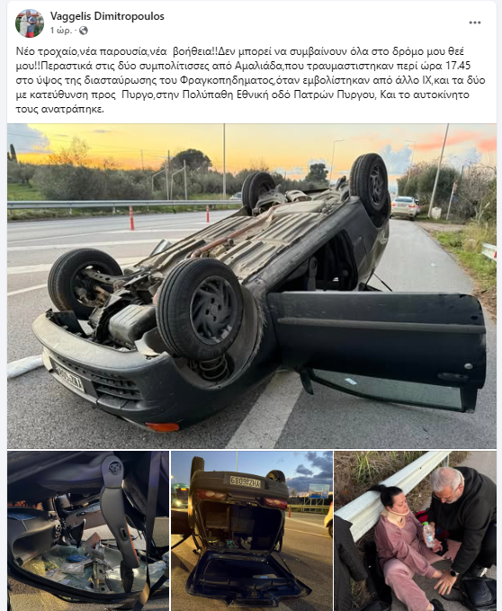 Σημαντική υπήρξε η συμβολή του διευθυντή των Επειγόντων Περιστατικών του Νοσοκομείου Αμαλιάδας, Βαγγέλη Δημητρόπουλου, ο οποίος βρέθηκε τυχαία στο σημείο την ώρα του συμβάντος και αντέδρασε άμεσα προσφέροντας τις πρώτες βοήθειες στην τραυματισμένη οδηγό.