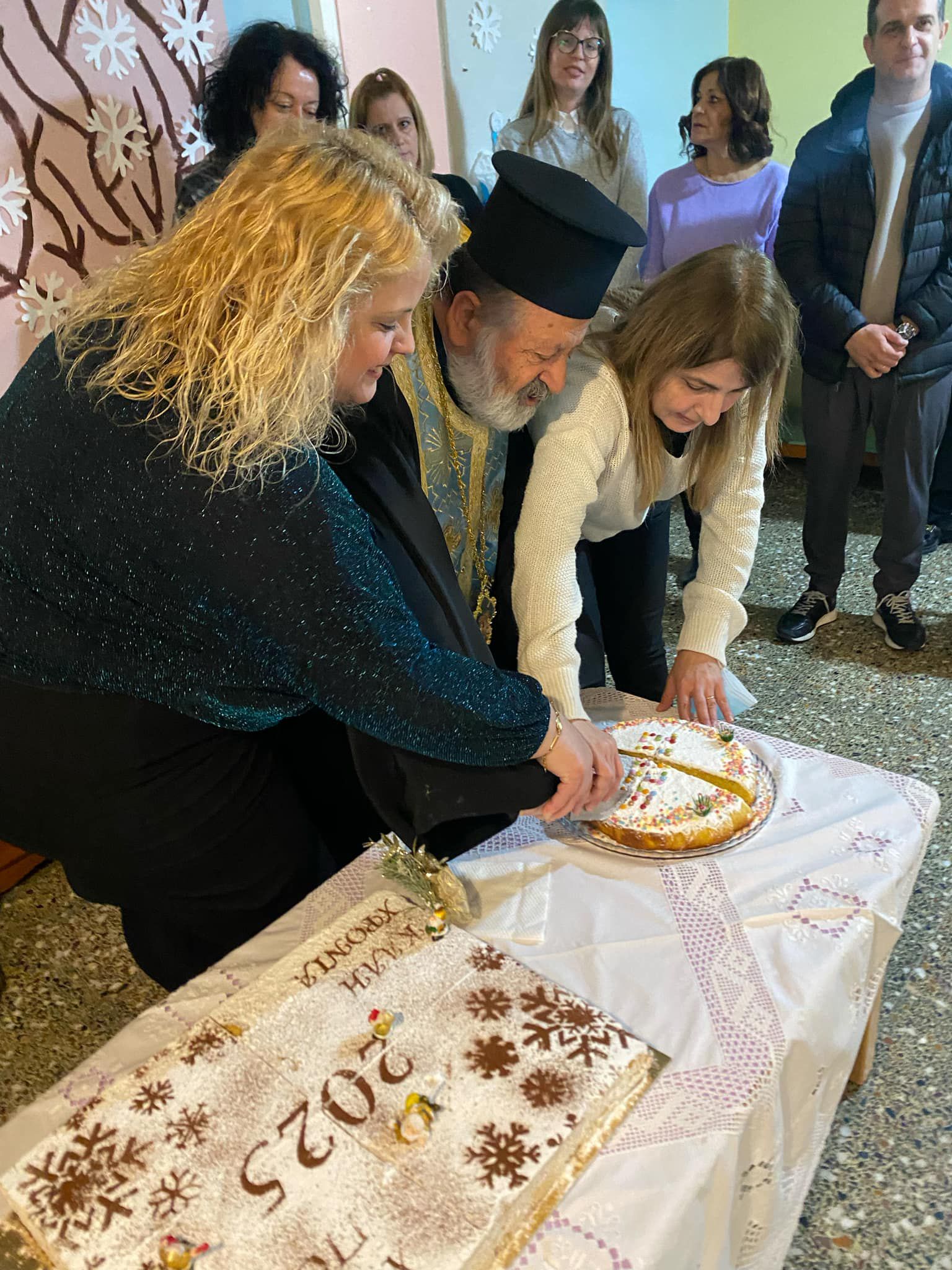 Στην συνέχεια ο πρόεδρος της κοινότητας και η προϊσταμένη μας έδωσαν τις ευχές τους για μια καλή χρονιά και κόψαμε τις βασιλόπιτες!!Μια για τα παιδιά και μια για το προσωπικό!
