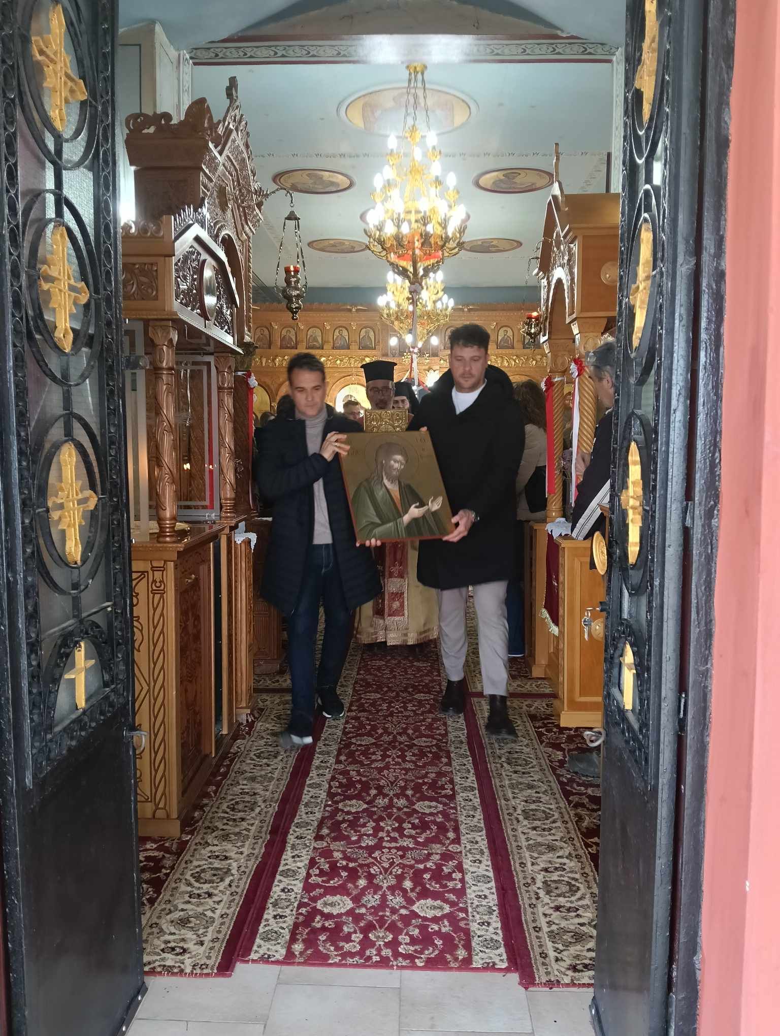 Εγινε περιφορά της εικόνας πέριξ του ναού.