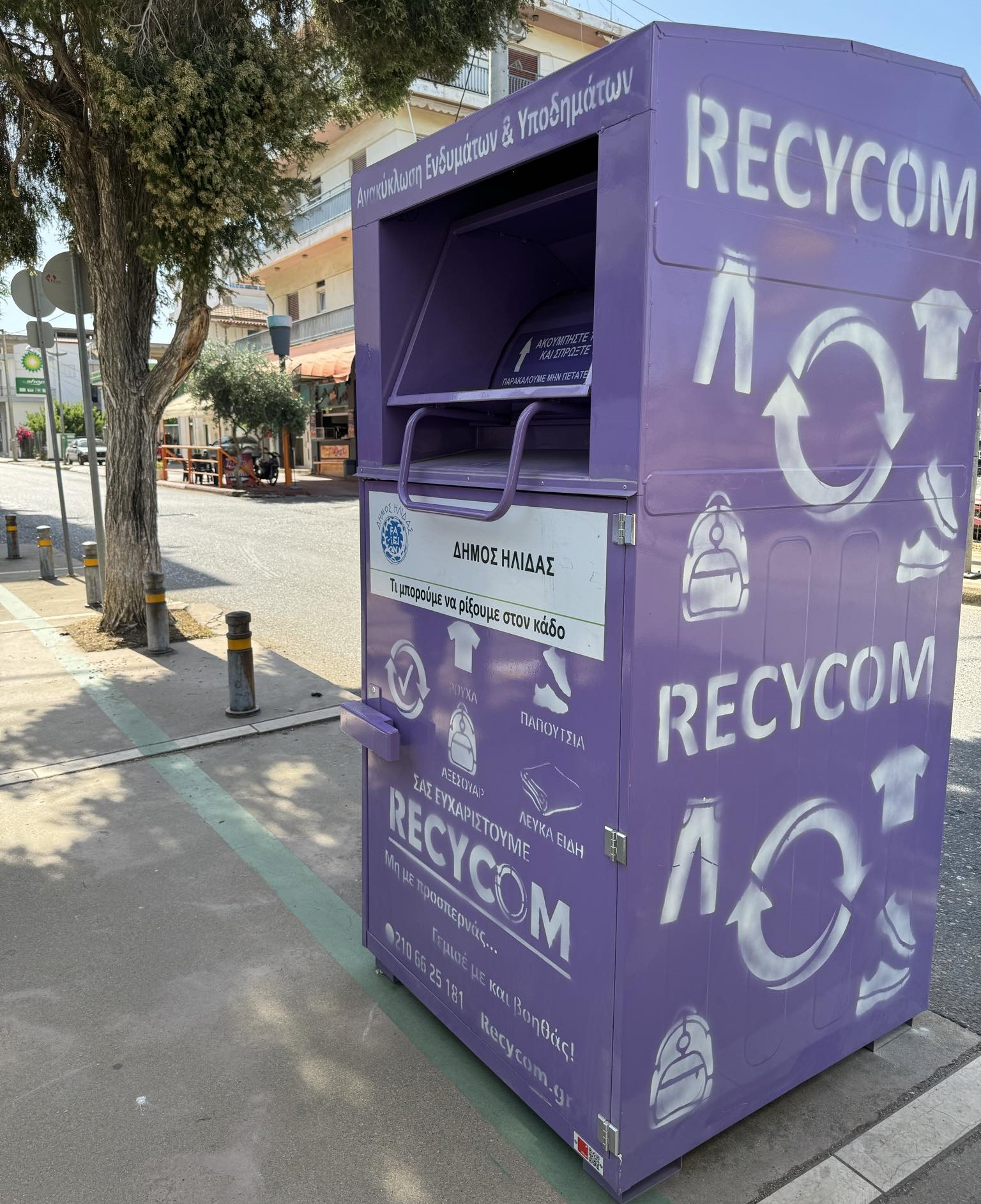 Στις 18 Ιουνίου του 2024 τοποθετήθηκαν σε 10 σημεία της Αμαλιάδας οι ειδικοί μωβ κάδοι για τη συλλογή παλαιών ρούχων & υποδημάτων και μέσα σε μόλις έξι μήνες κατάφερε ο Δήμος Ήλιδας να συλλέξει 13 τόνους από παλαιά ρούχα και παπούτσι, τα οποία διαφορετικά θα κατέληγαν στα σκουπίδια.