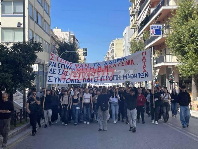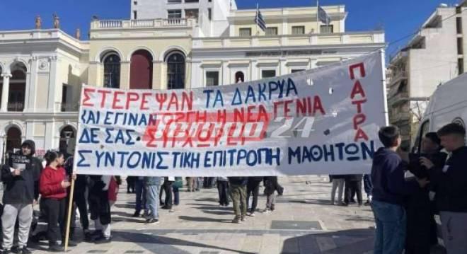 Μαζικό φοιτητικό και μαθητικό συλλαλητήριο, με κύριο αίτημα την απόδοση δικαιοσύνης για το πολύνεκρο σιδηροδρομικό δυστύχημα των Τεμπών, πραγματοποιήθηκε σήμερα το μεσημέρι στην πλατεία Γεωργίου, της Πάτρας.