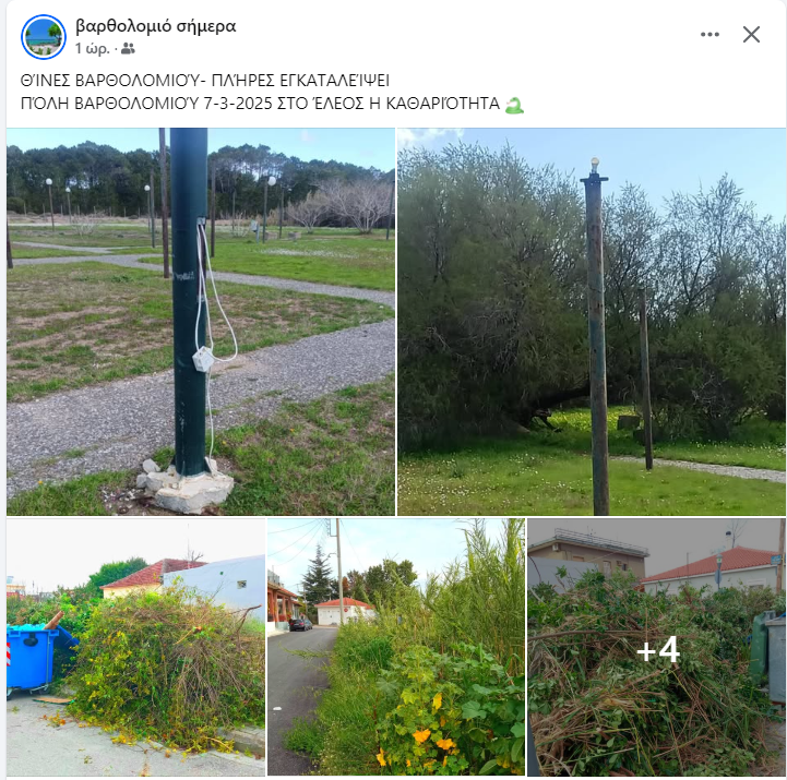 Την άσχημη εικόνα που επικρατεί στο Βαρθολομιό, καυτηρίασε χθες, με δημοσίευμα στο facebook, η ομάδα “Βαρθολομιό σήμερα”.
