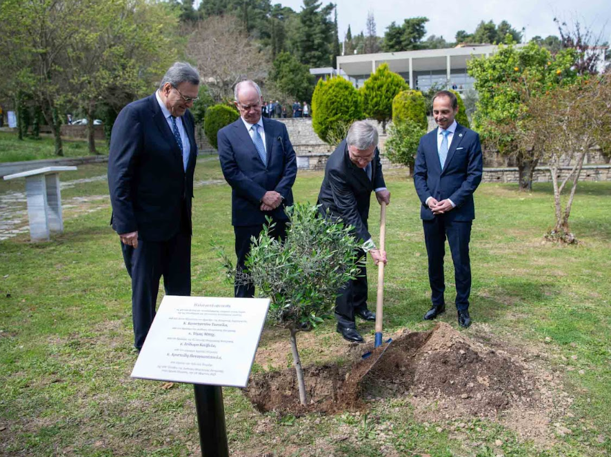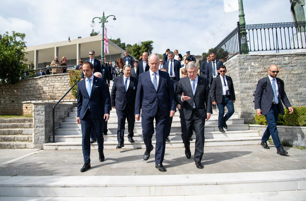 Σημειώνεται, ότι ο Πρόεδρος της Δημοκρατίας, ως λάτρης του Ολυμπιακού Ιδεώδους, αναφέρθηκε στη σημασία του Ολυμπιακού Ύμνου, σε στίχους Κωστή Παλαμά, όπου ο ποιητής καλεί το ολυμπιακό πνεύμα της αρχαιότητας να λάμψει ξανά μετά από αιώνες, για να προσδώσει στα αθλήματα το μεγαλείο και την αίγλη των αρχαίων Αγώνων, παντρεύοντας, έτσι, το χθες με το σήμερα. Ακολούθησε η συμβολική φύτευση ελιάς, στον αύλειο χώρο του Παλαιού Δημαρχείου, από τον Δήμαρχο Αρχαίας Ολυμπίας, τον Πρόεδρο της Δημοκρατίας, τον Πρόεδρο της Ελληνικής Ολυμπιακής Επιτροπής και τον απερχόμενο Πρόεδρο της Διεθνούς Ολυμπιακής Επιτροπής, Thomas Bach.
