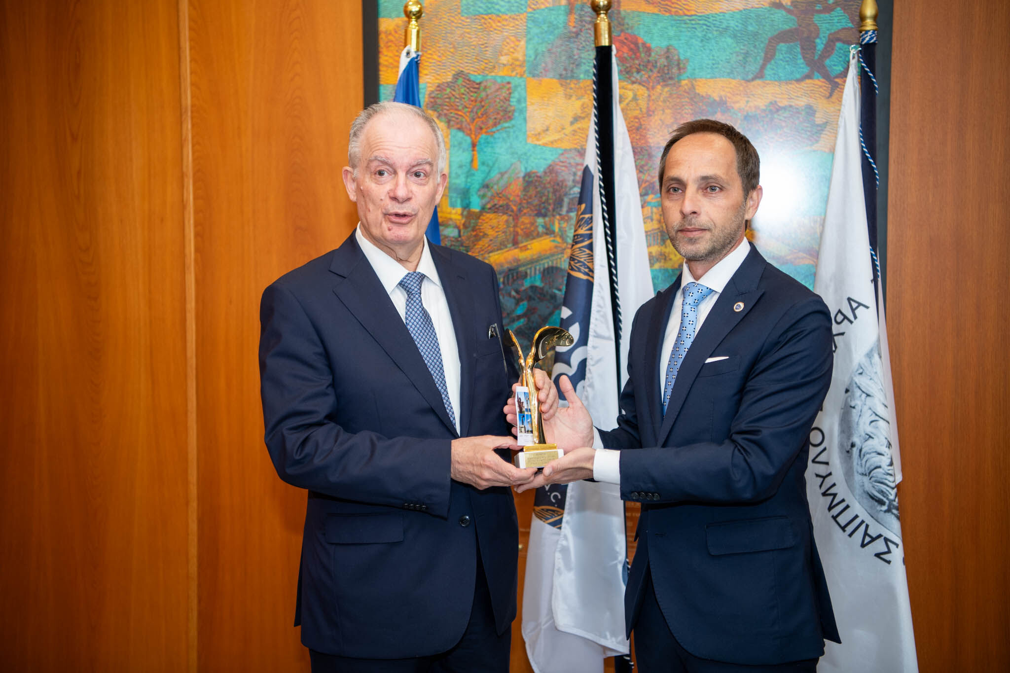 Στο πλαίσιο της Τελετής Έναρξης της 144ης Συνόδου της Διεθνούς Ολυμπιακής Επιτροπής που έλαβε χώρα στο στάδιο της ΔΟΑ, ο Δήμαρχος είχε την ευκαιρία να συναντηθεί στο γραφείο του με τον Πρόεδρο της Δημοκρατίας, Κωνσταντίνο Τασούλα και τον Πρόεδρο της Ελληνικής Ολυμπιακής Επιτροπής, Ισίδωρο Κούβελο και να συζητήσουν σημαντικά ζητήματα ανάπτυξης και προβολής του Δήμου. Ο Πρόεδρος της Δημοκρατίας εξέφρασε τη χαρά του που επισκέπτεται την Αρχαία Ολυμπία, τόνισε την αίγλη της πόλης και επισήμανε τον μαγνητισμό αυτής της περιοχής, γεγονός που επιβεβαιώνεται από την απόφαση τέλεσης της Έναρξης της Διεθνούς Συνόδου εδώ, στον τόπο που γέννησε τους Ολυμπιακούς Αγώνες.
