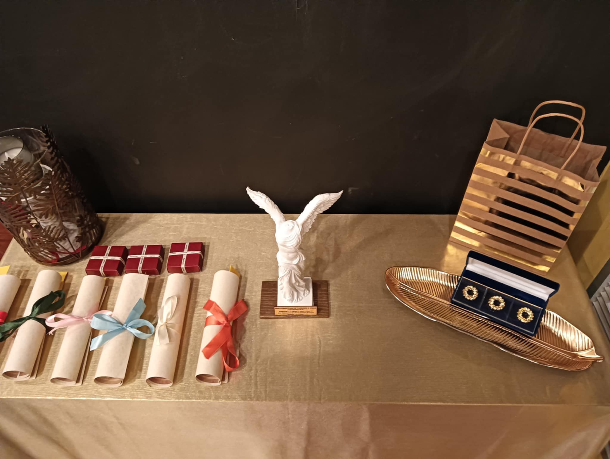 Κατά την διάρκεια της εκδήλωσης ο κ.Κώστας Τριανταφυλλόπουλος βράβευσε τον καλλιτεχνικό Διευθυντή κ.Στ.Σολομό, την Πολυφωνική Χορωδία Πατρών, τους Γ,Παπαγεωργίου,Χρύσα Πανταζοπούλου,Αγγ.Λαμπρόπουλο[Δ/την του Γυμνασίου] και τη ”Χοροκίνηση” ευχαριστώντας για την βραδιά μυσταγωγίας που προσέφεραν στο κοινό του Πύργου. Την επιμέλεια του χώρου και την φιλοτέχνηση των βραβείων είχε η κα Αλεξάνδρα Παπαδοπούλου”Χρυσές Δημιουργίες” Να σημειώσουμε τέλος, ότι το αφιέρωμα είχε τεθεί υπό την Αιγίδα του Διεθνούς Οργανισμού international Action Art και συμπαρίσταντο,η ΟΤΟΕ και o Δήμος Πύργου Παρέστησαν ο μεταξύ των άλλων ,εκπρ/πος του Σεβ.Μητροπολίτη,ο βουλευτής Ηλείας κ.Μιχ.Κατρίνης,ο Αντ/ρχης Ηλείας κ.Νικος Κοροβέσης ο Δασάρχης κ.Παν.Λάτας,ο Πρόεδρος του Ιατρικού Συλλόγου κ.Χρ.Γιαννικούλης,ο Πρόεδρος της Φιλαρμονικής κ.Αθαν.Δασκόπουλος ,η Πρόεδρος της Μικτής Χορωδίας κα Γιάννα Τζοανοπούλου.η Προεδρος του συλ.”Αρμονία” κα Αφρ.Τσαγκάρη,μελη ΔΣ Οργανώσεων κα