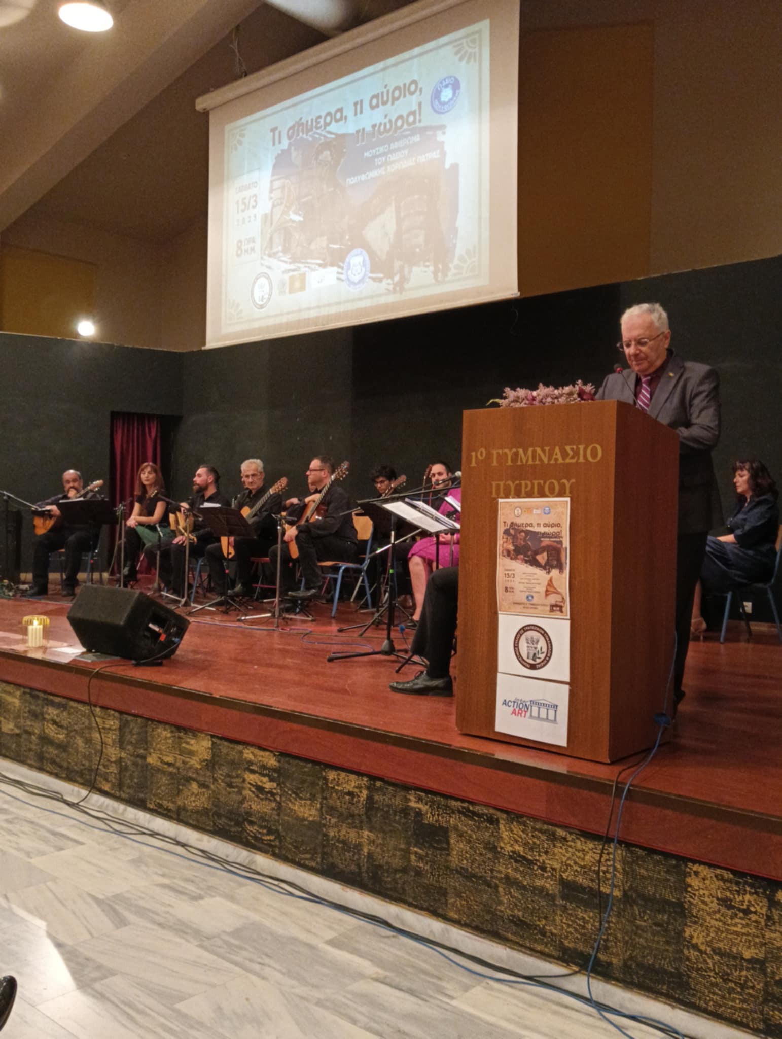 Ένα πλούσιο μουσικοχορευτικό αφιέρωμα με αφετηρία το ρεμπέτικο τραγούδι και αναφορές στο μεγάλο συνθέτη και στιχουργό Βασίλη Τσιτσάνη,υπό τους ήχους της διεθνούς φήμης Ορχήστρας και Χορωδίας της Πολυφωνικής Χορωδίας Πατρών , είχαν την ευκαιρία να απολαύσουν οι θεατές που κατέκλυσαν το θέατρο του 1ου Γυμνασίου Πύργου, το βράδυ του Σαββάτου, στην θαυμάσια εκδήλωση που διοργάνωσε με πρωτοβουλία του ο Πολιτιστικός Σύλλογος Τραπεζικών Ηλείας. Ένα ιστορικό, μουσικοχορευτικό ταξίδι στις λαμπρές σελίδες του Ελληνικού πολιτισμού. Ήταν πραγματικά μια αξέχαστη νοσταλγική και συγκινητική βραδιά που χειροκροτήθηκε θερμά από τον κόσμο που τραγουδούσε μαζί τους τα πασίγνωστα τραγούδια.